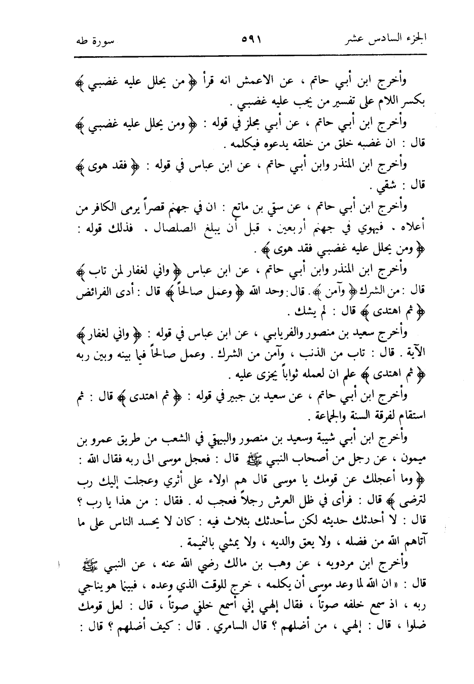 وَأخرج ابْن أبي حَاتِم عَن سعيد بن جُبَير فِي قَوْله: {ثمَّ اهْتَدَى} قَالَ: ثمَّ استقام لفرقة السّنة وَالْجَمَاعَة