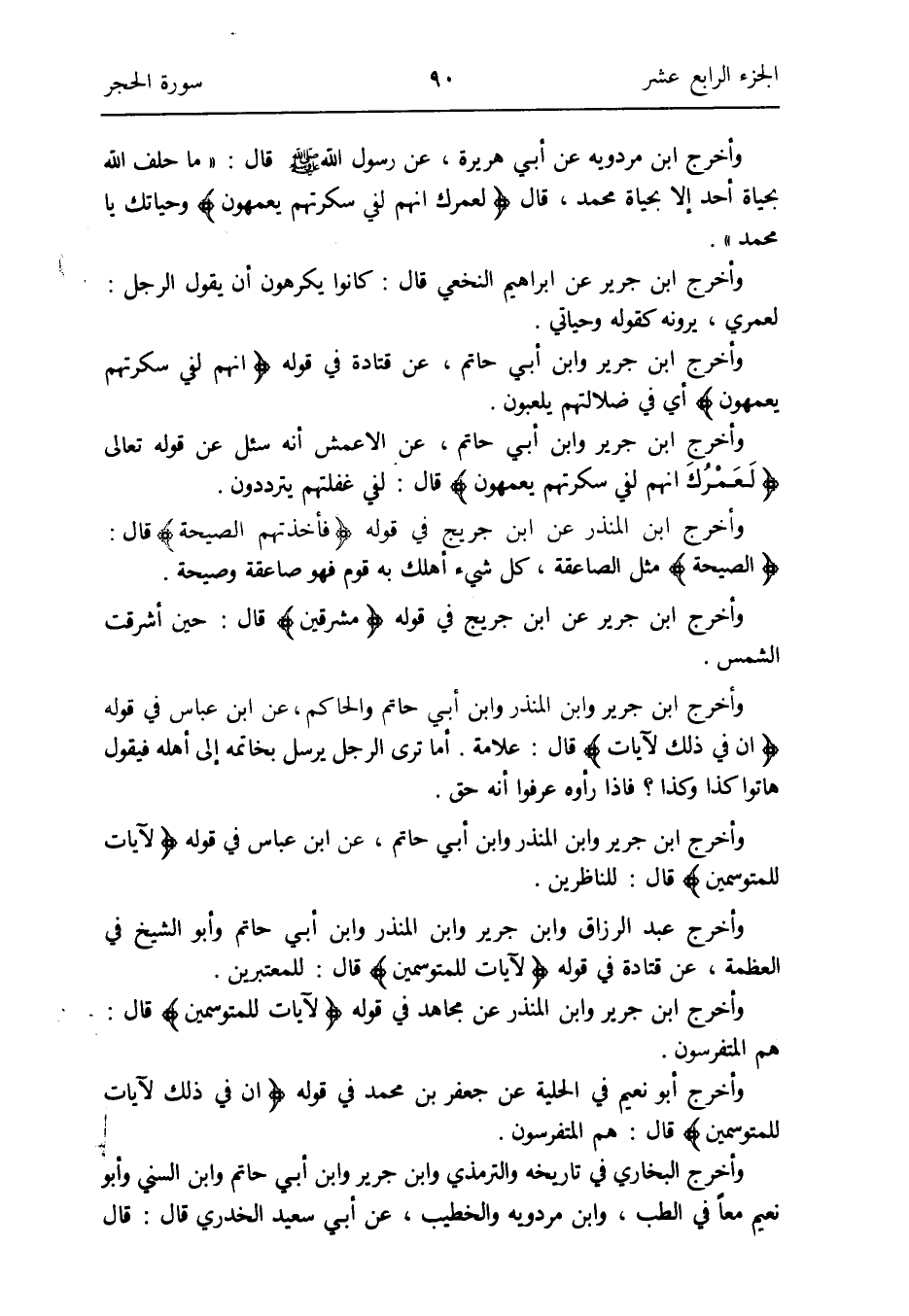 وَأخرج ابْن جرير وَابْن أبي حَاتِم عَن قَتَادَة فِي قَوْله: {إِنَّهُم لفي سكرتهم يعمهون} قَالَ: لفي ضلالهم يَلْعَبُونَ