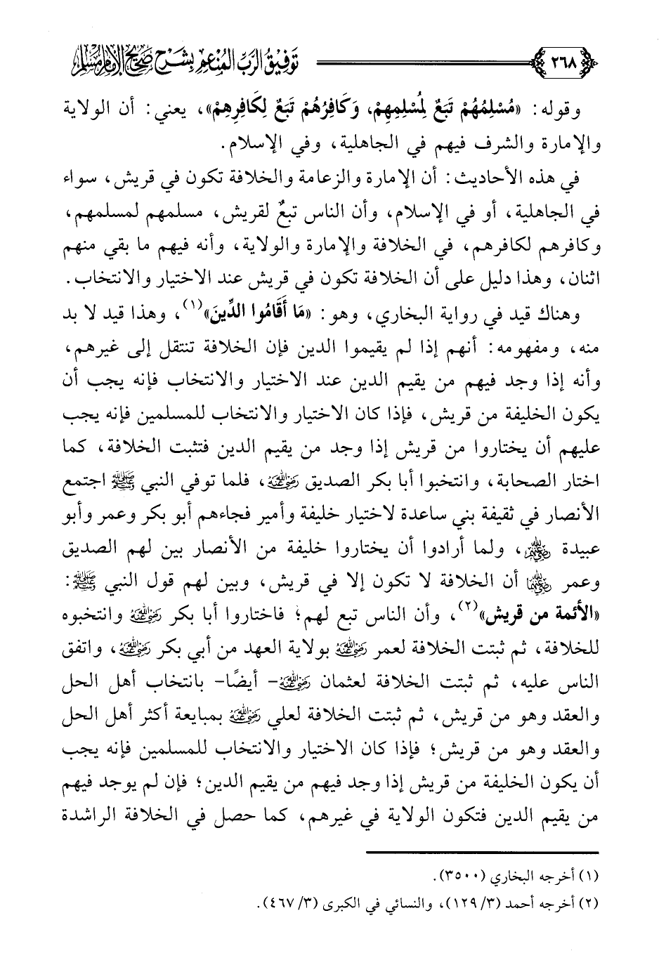 هذه الأحاديث فيها: أن الإمارة والزعامة والخلافة تكون في قريش، سواء في الجاهلية، أو في الإسلام، وأن الناس تبعٌ لقريش، مسلمهم لمسلمهم، وكافرهم لكافرهم، في الخلافة والإمارة والولاية، وأنه فيهم ما بقي منهم اثنان، وهذا دليل على أن الخلافة تكون في قريش عند الاختيار والانتخاب.
