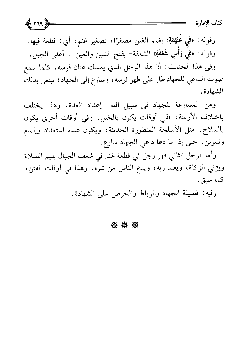 وأما الرجل الثاني فهو رجل في قطعة غنم في شعف الجبال يقيم الصلاة ويؤتي الزكاة، ويعبد ربه، ويدع الناس من شره، وهذا في أوقات الفتن كما سبق.