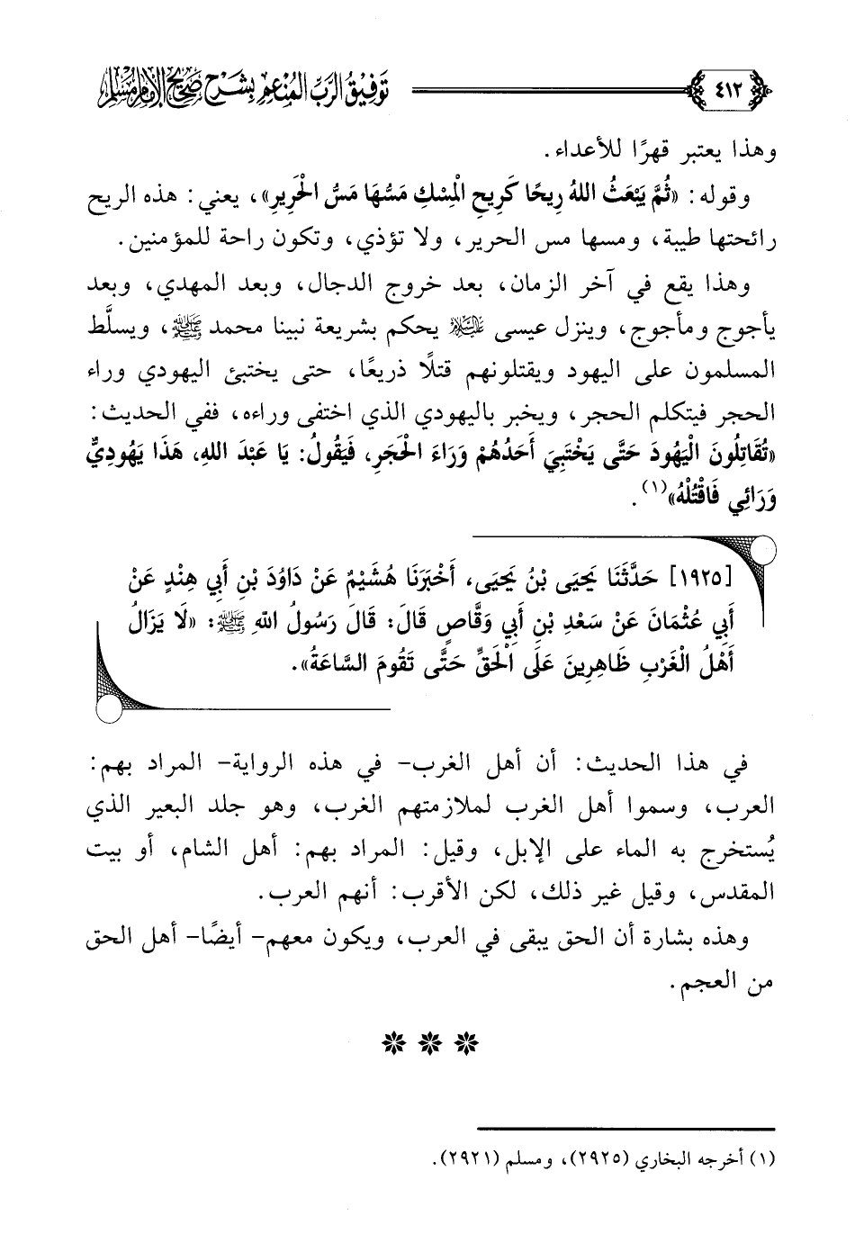 [١٩٢٥] حَدَّثَنَا يَحيَى بْنُ يَحيَى، أَخْبَرَنَا هُشَيْمٌ عَنْ دَاوُدَ بْنِ أَبِي هِنْدٍ عَنْ أَبِي عُثْمَانَ عَنْ سَعْدِ بْنِ أَبِي وَقَّاصٍ قَالَ: قَالَ رَسُولُ اللهِ صلى الله عليه وسلم: ((لَا يَزَالُ أَهْلُ الْغَرْبِ ظَاهِرِينَ عَلَى الْحَقِّ حَتَّى تَقُومَ السَّاعَةُ)).