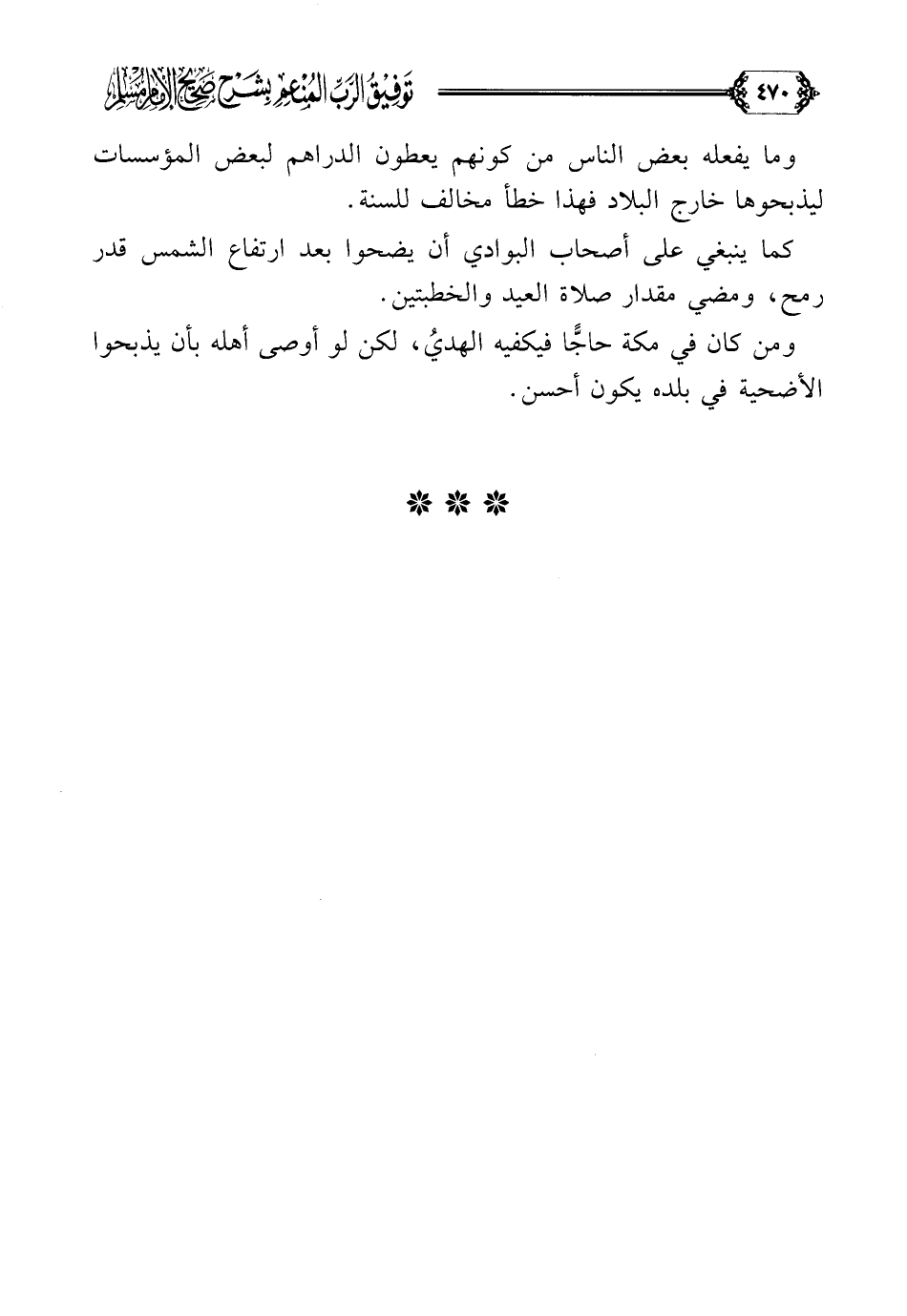 كما ينبغي على أصحاب البوادي أن يضحوا بعد ارتفاع الشمس قدر رمح، ومضي مقدار صلاة العيد والخطبتين.