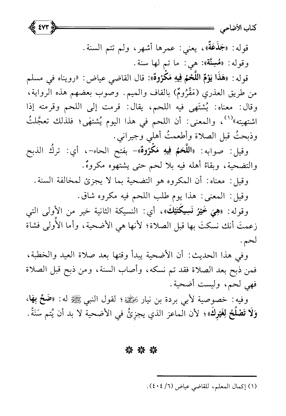 (¬١) إكمال المعلم، للقاضي عياض (٦/ ٤٠٤).