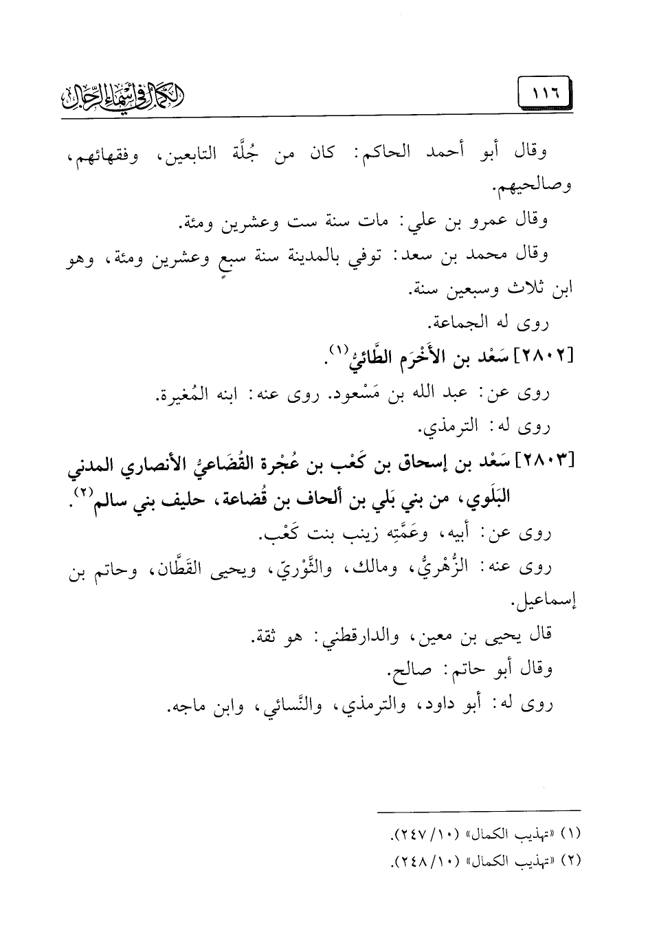 (¬٢) "تهذيب الكمال" (١٠/ ٢٤٨).