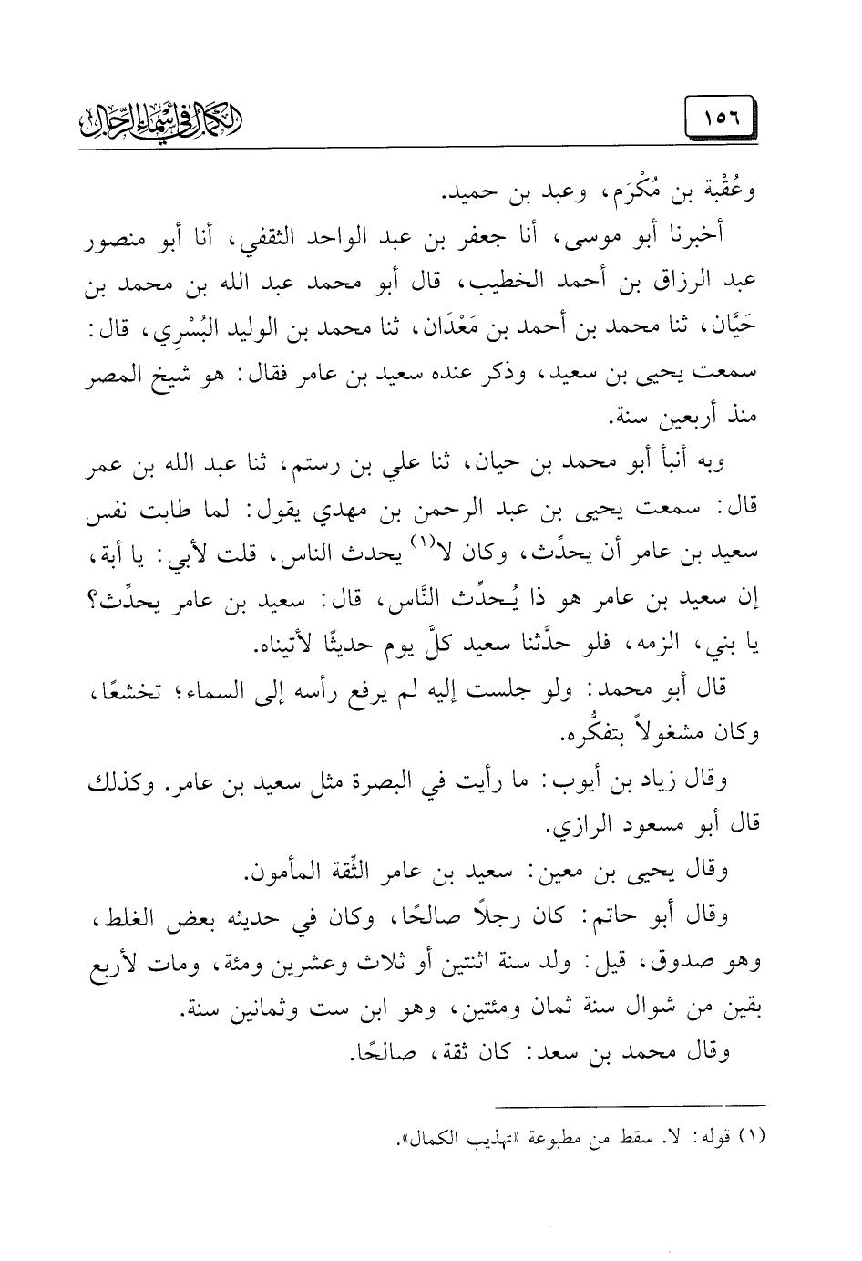 (¬١) قوله: لا. سقط من مطبوعة "تهذيب الكمال".
