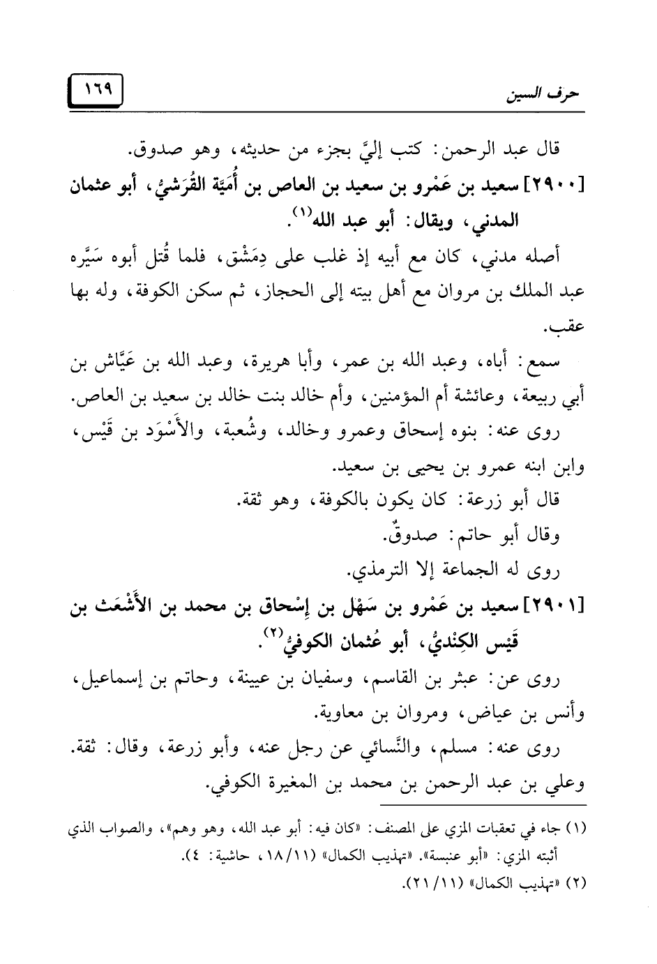 [٢٩٠٠] سعيد بن عَمْرو بن سعيد بن العاص بن أُمَيَّة القُرَشِيُّ، أبو عثمان المَدَني، ويقال: أبو عبد الله (¬١).