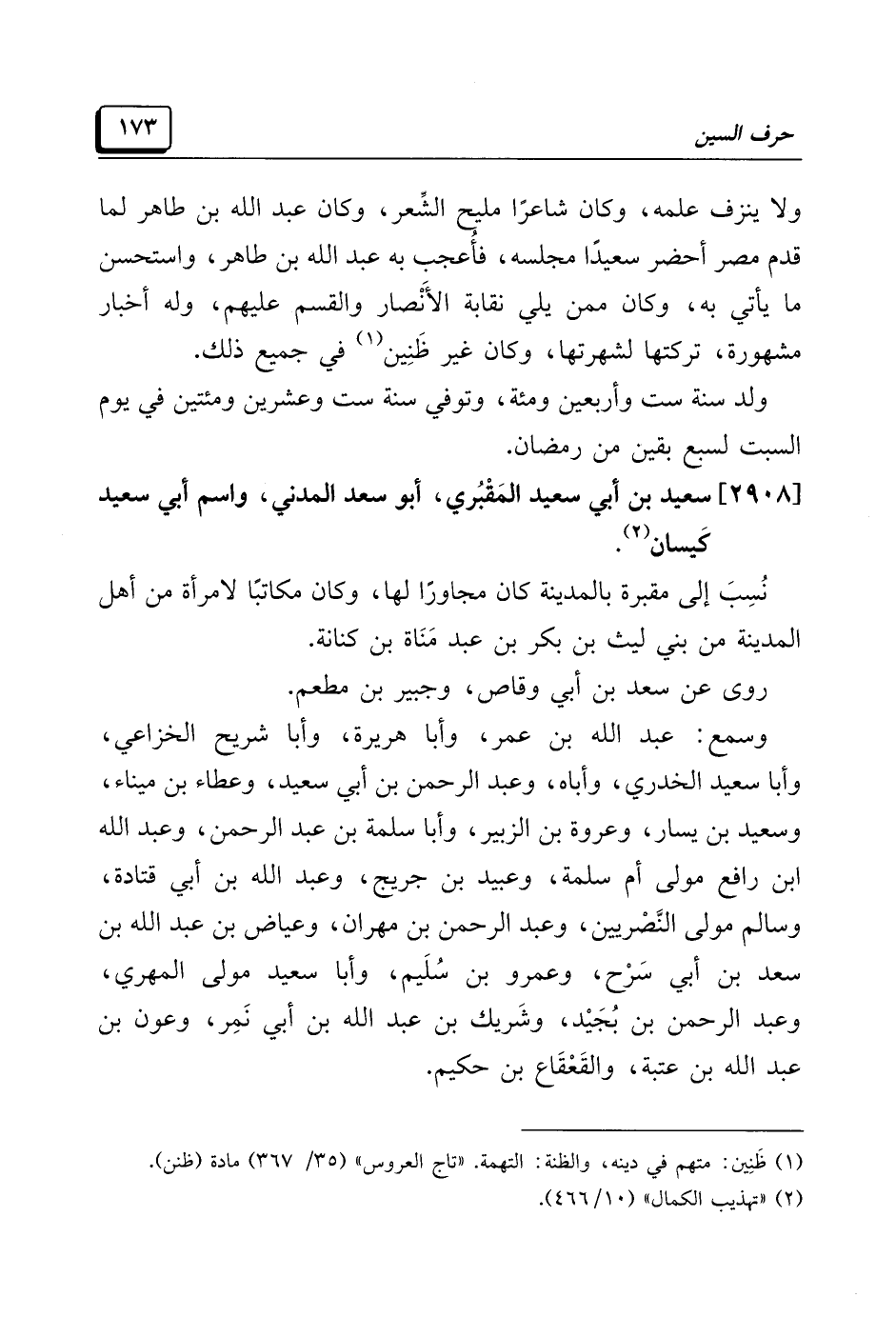 [٢٩٠٨] سعيد بن أبي سعيد المَقْبُرِيّ، أبو سعد المَدَني، واسم أبي سعيد كَيسان (¬٢).