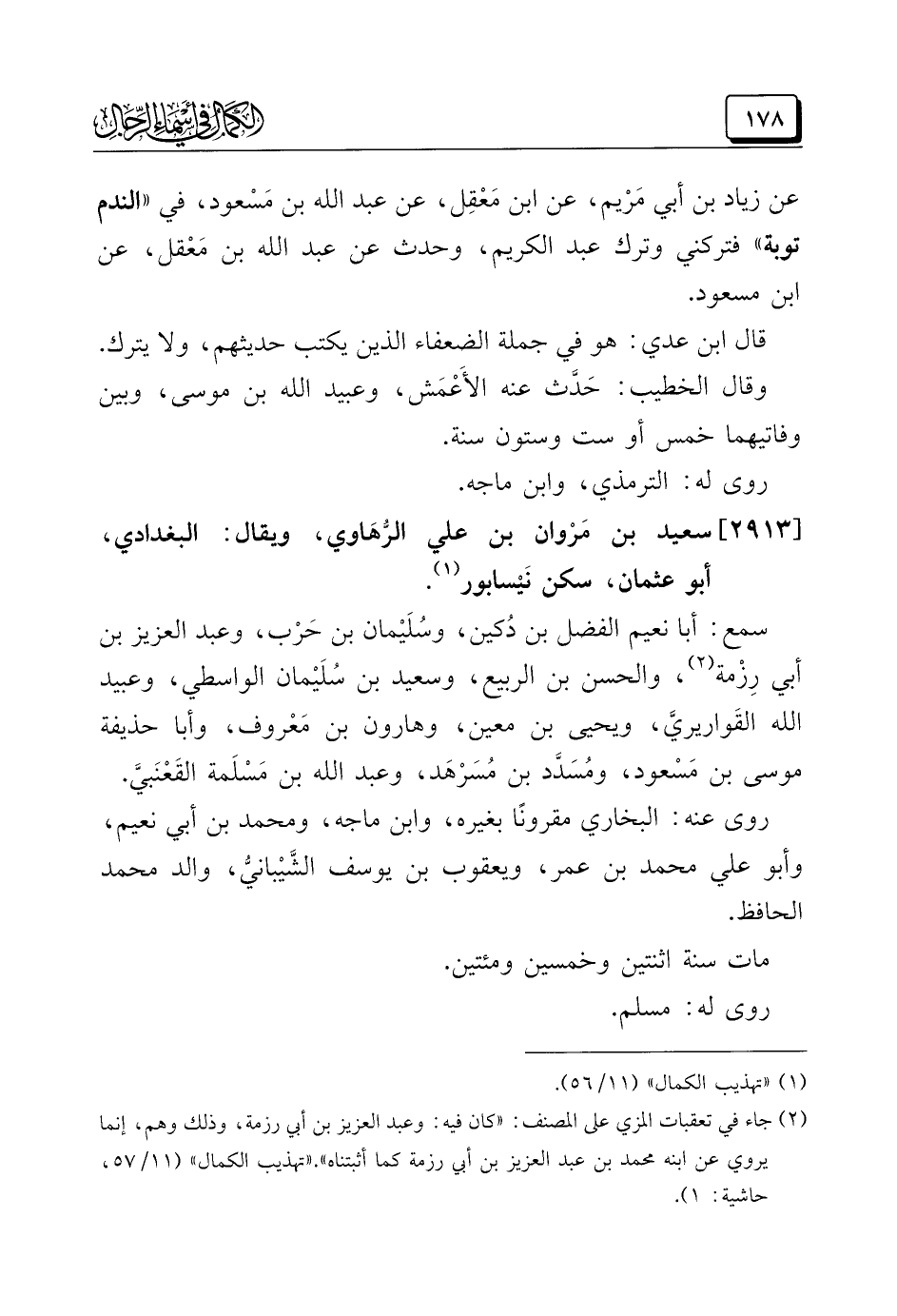 (¬١) "تهذيب الكمال" (١١/ ٥٦).
