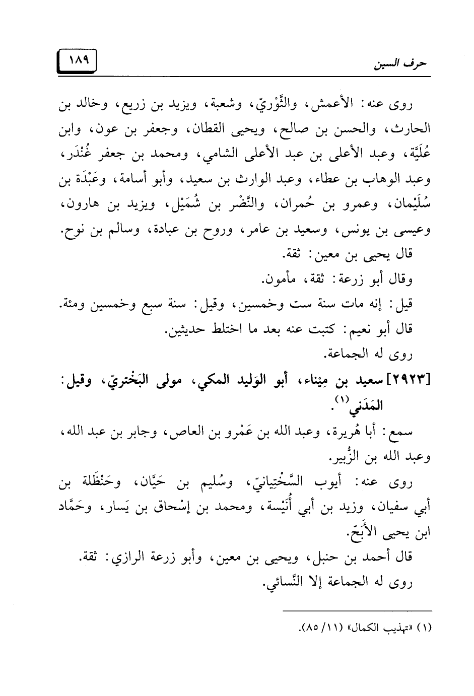 (¬١) "تهذيب الكمال" (١١/ ٨٥).