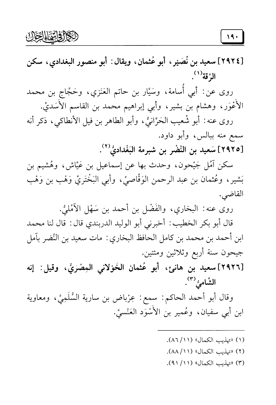 (¬٣) "تهذيب الكمال" (١١/ ٩١).