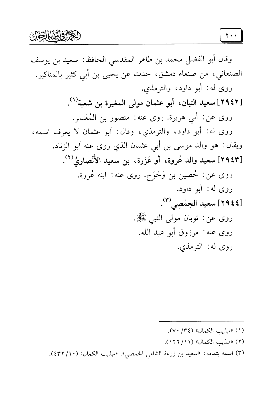 (¬٣) اسمه بتمامه: "سَعِيد بن زرعة الشَّامِيّ الحِمْصِيّ". "تهذيب الكمال" (١٠/ ٤٣٢).