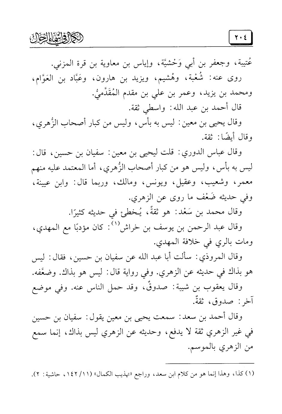 (¬١) كذا، وهذا إنَّما هو من كلام ابن سعد، وراجع "تهذيب الكمال" (١١/ ١٤٢، حاشية: ٢).