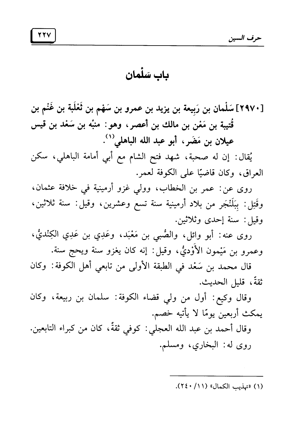 (¬١) "تهذيب الكمال" (١١/ ٢٤٠).