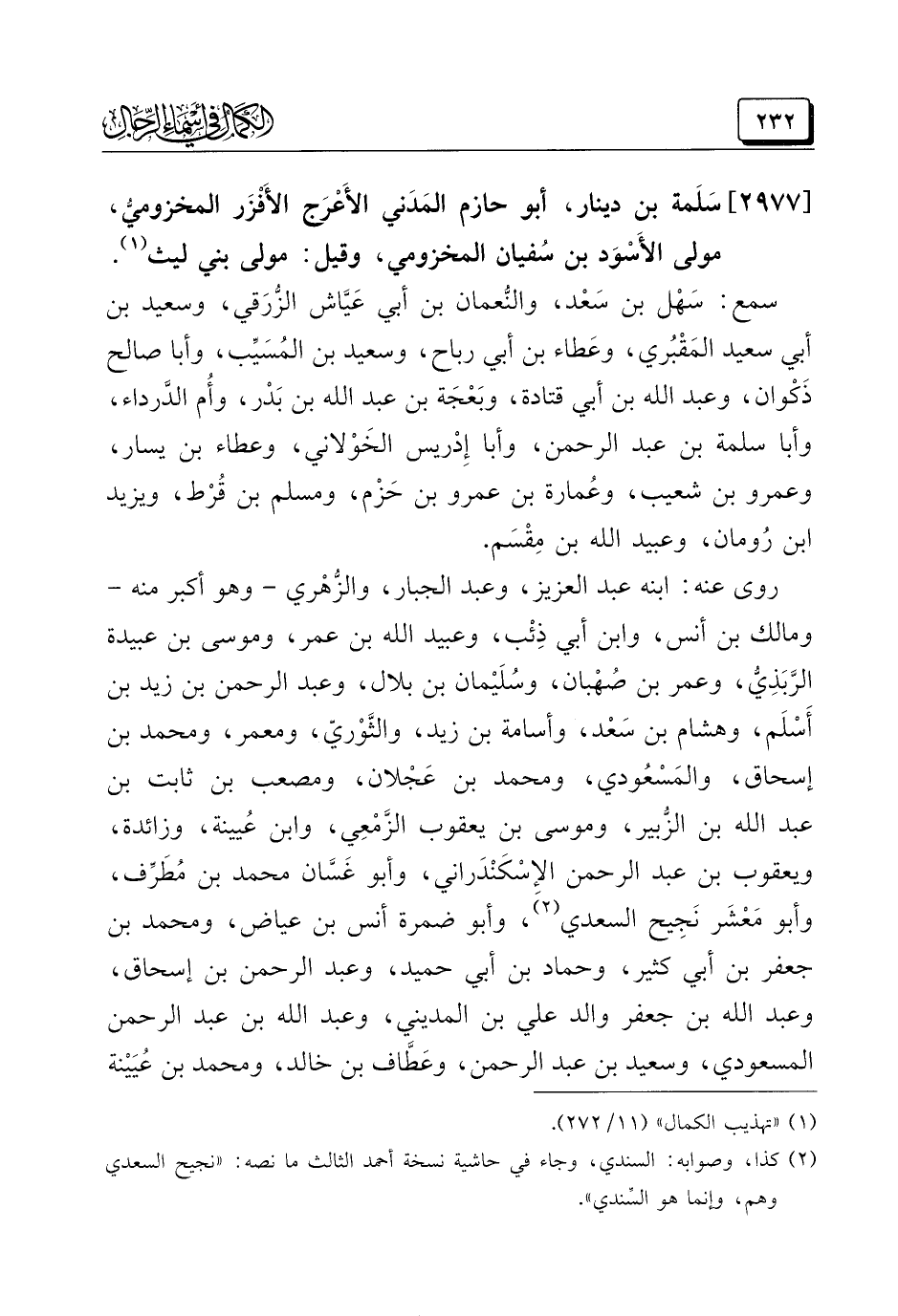 (¬٢) كذا، وصوابه: السندي، وجاء في حاشية نسخة أحمد الثالث ما نصه: "نجيح السعدي وهم، وإنما هو السّندي".