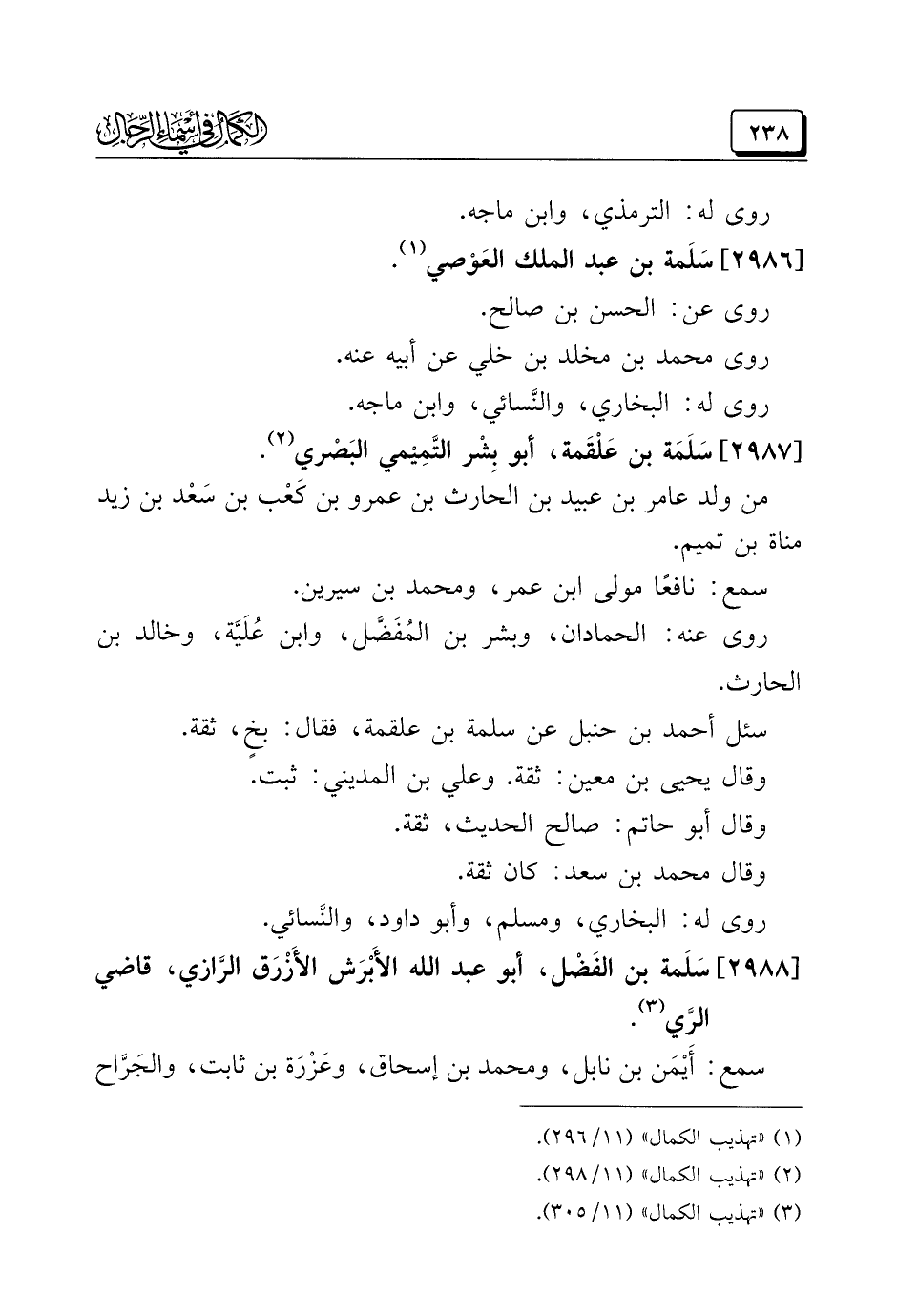 (¬٣) "تهذيب الكمال" (١١/ ٣٠٥).