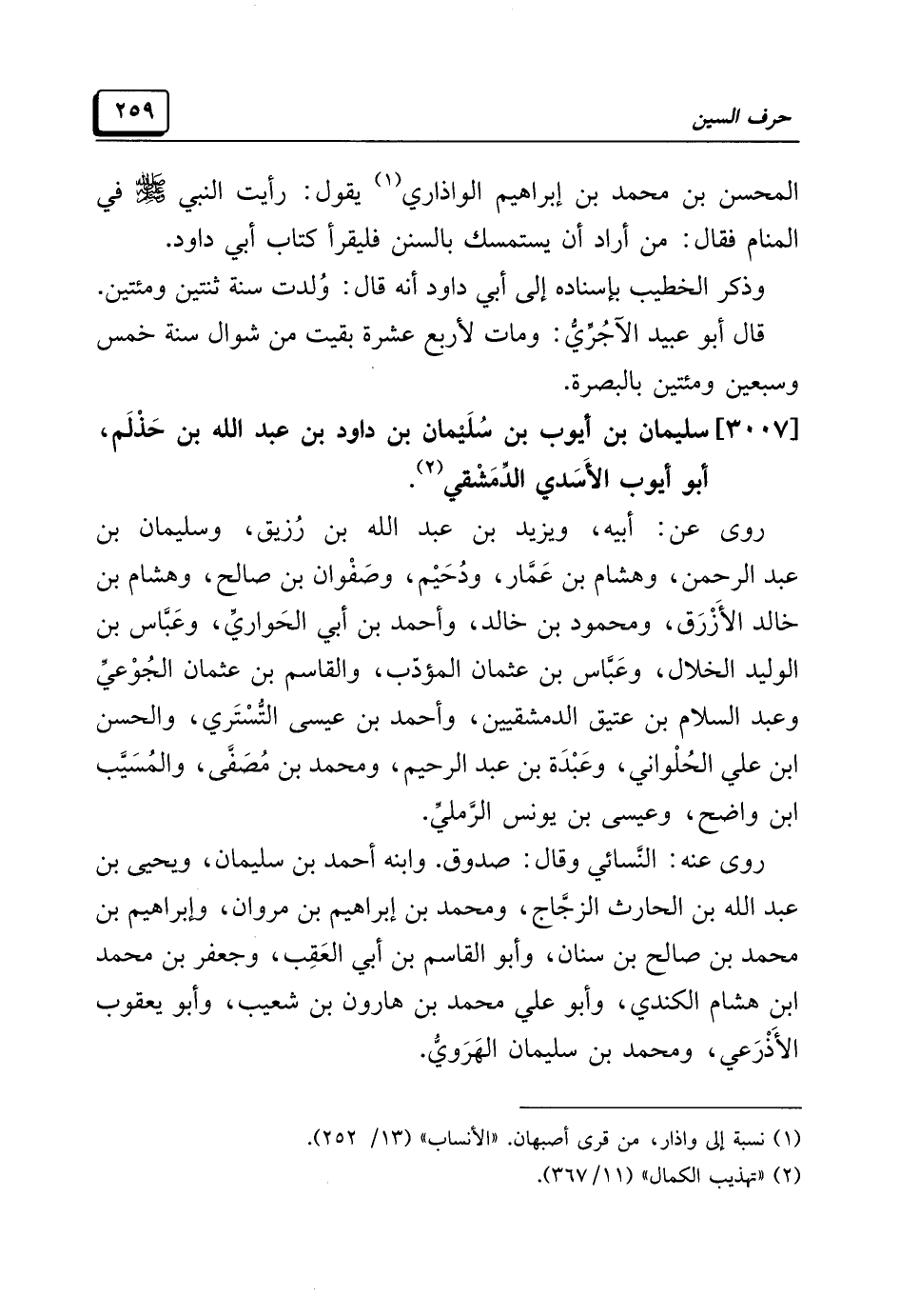 [٣٠٠٧] سليمان بن أيوب بن سُلَيْمان بن داود بن عبد الله بن حَذْلَم، أبو أيوب الأَسَدي الدِّمَشْقي (¬٢).