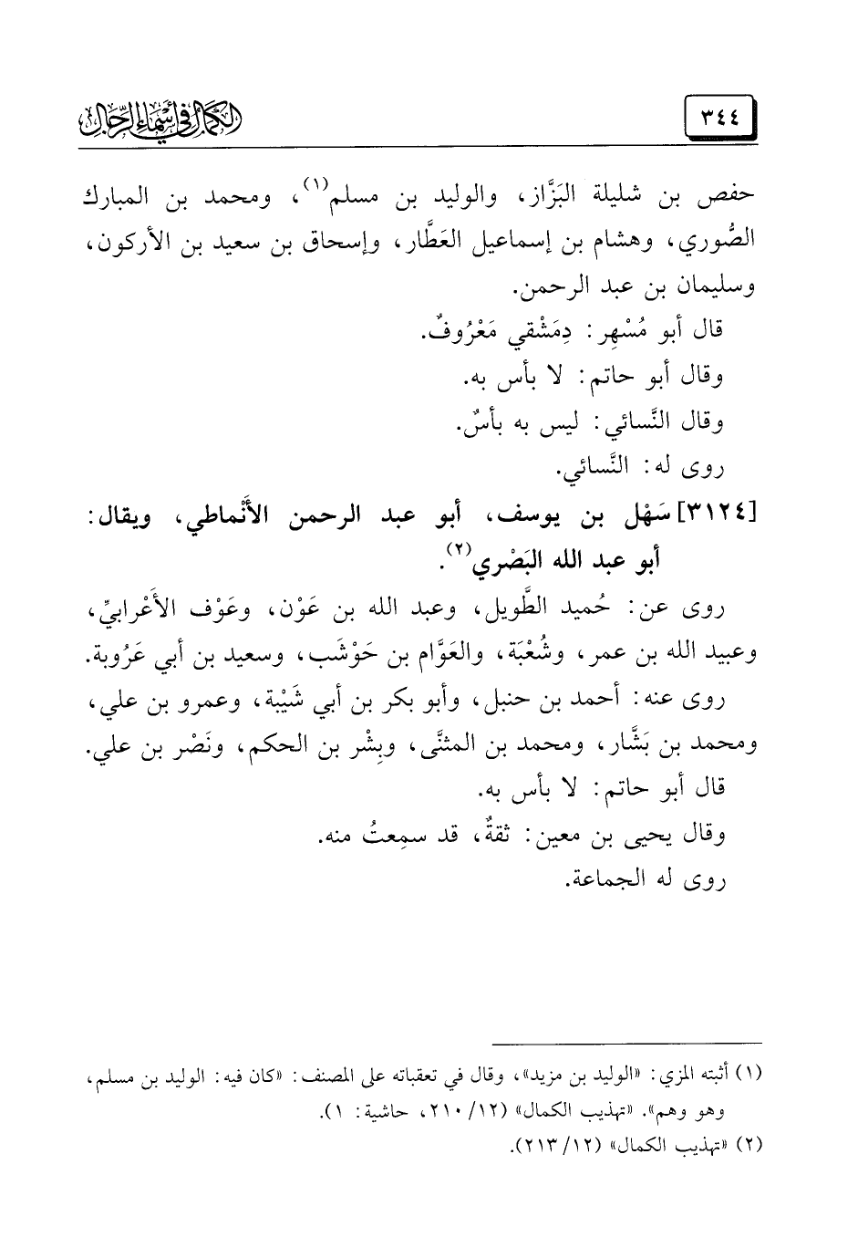 (¬٢) "تهذيب الكمال" (١٢/ ٢١٣).