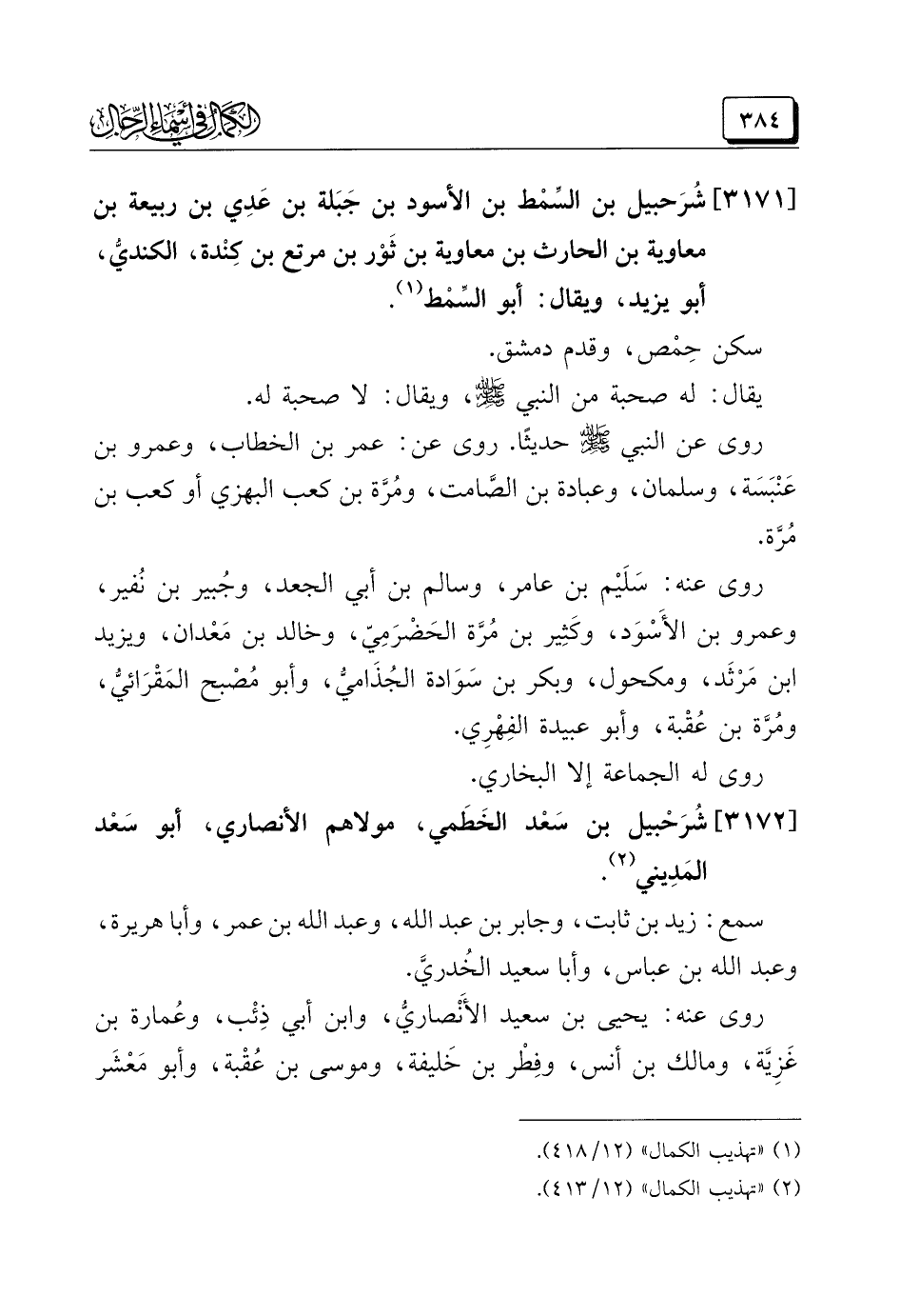 (¬٢) "تهذيب الكمال" (١٢/ ٤١٣).