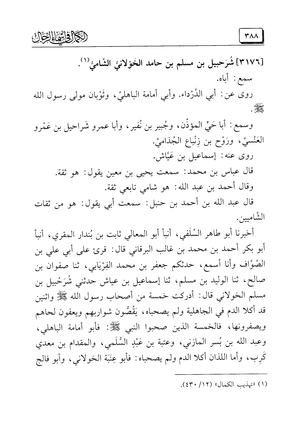 (¬١) "تهذيب الكمال" (١٢/ ٤٣٠).