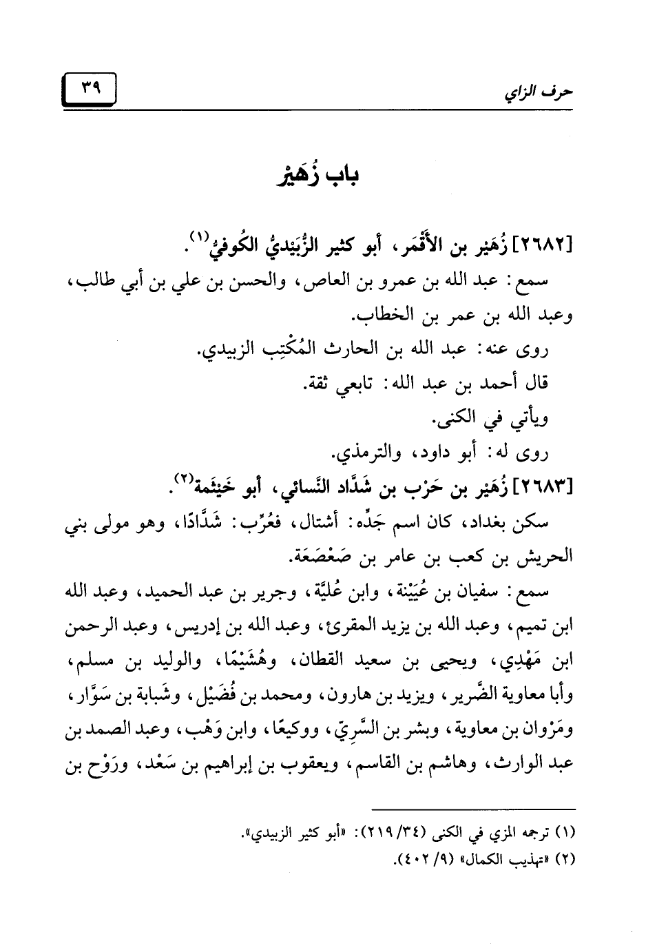 [٢٦٨٢] زُهَيْر بن الأَقْمَر، أبو كثير الزُّبَيْديُّ الكُوفيُّ (¬١).