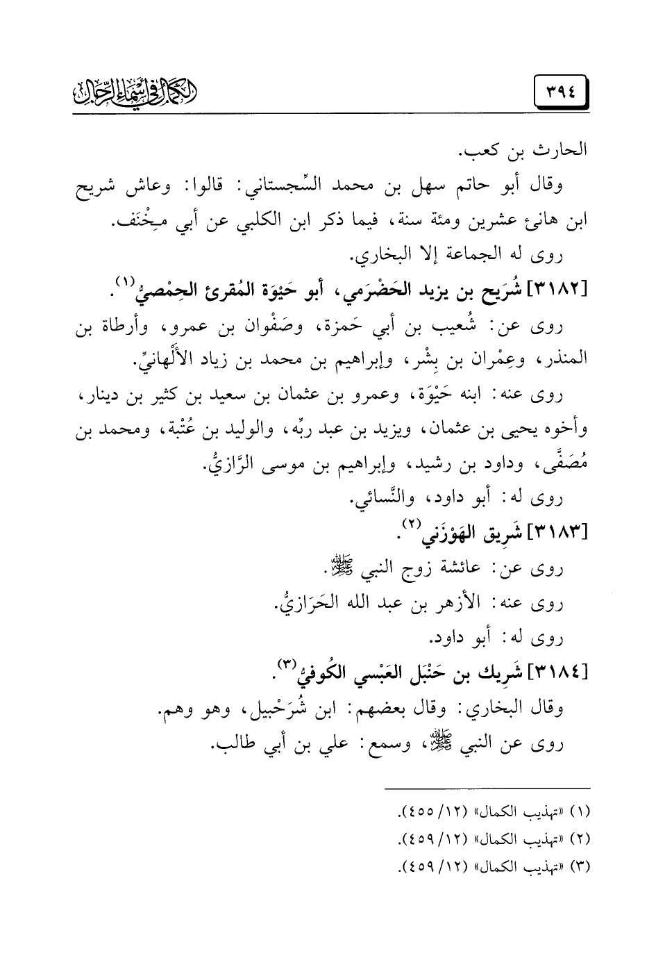(¬٣) "تهذيب الكمال" (١٢/ ٤٥٩).