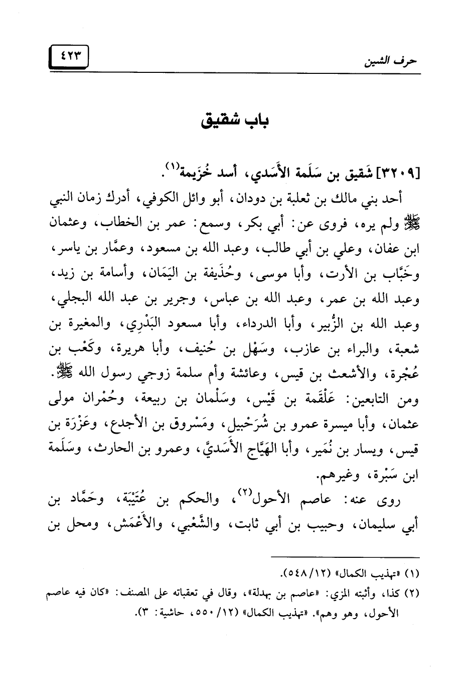 [٣٢٠٩] شَقيق بن سَلَمة الأَسَدي، أسد خُزَيمة (¬١).