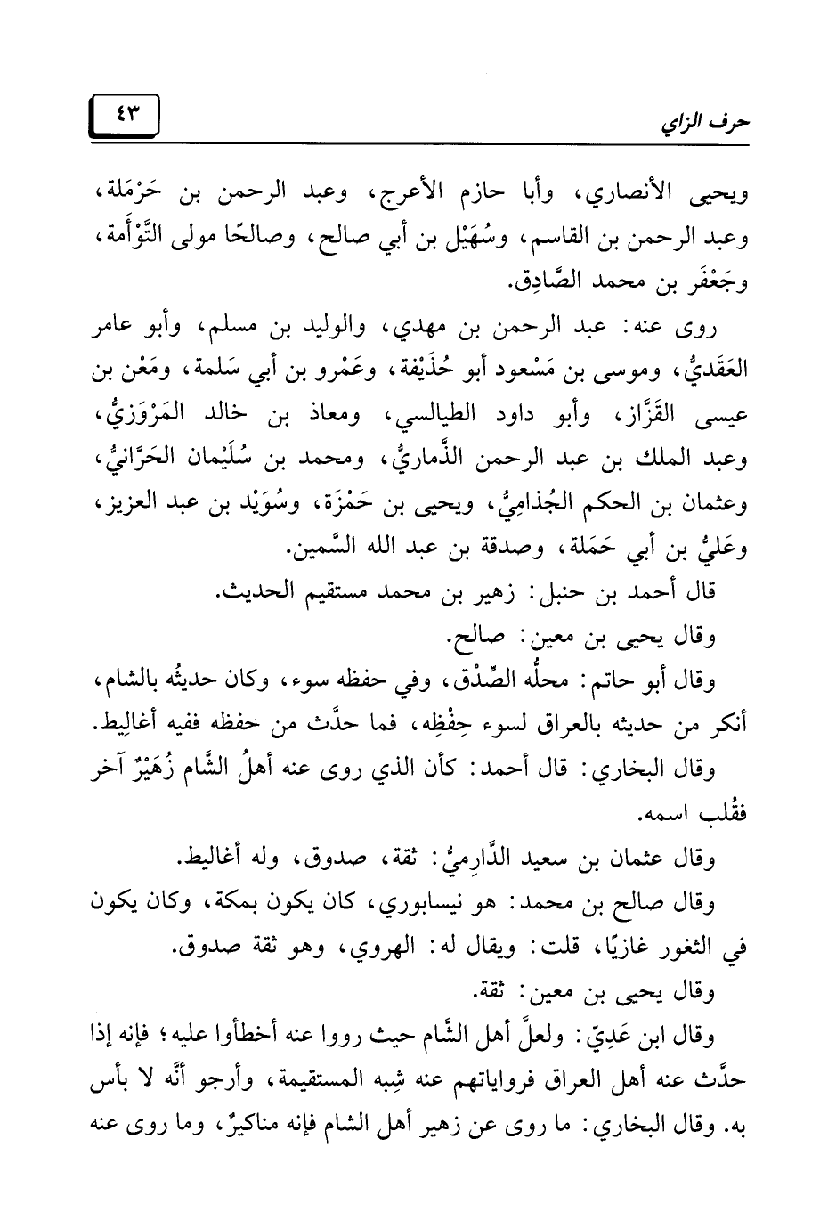 وقال البخاري: قال أحمد: كأن الذي روى عنه أهلُ الشَّام زُهَيْرٌ آخر فقُلب اسمه.