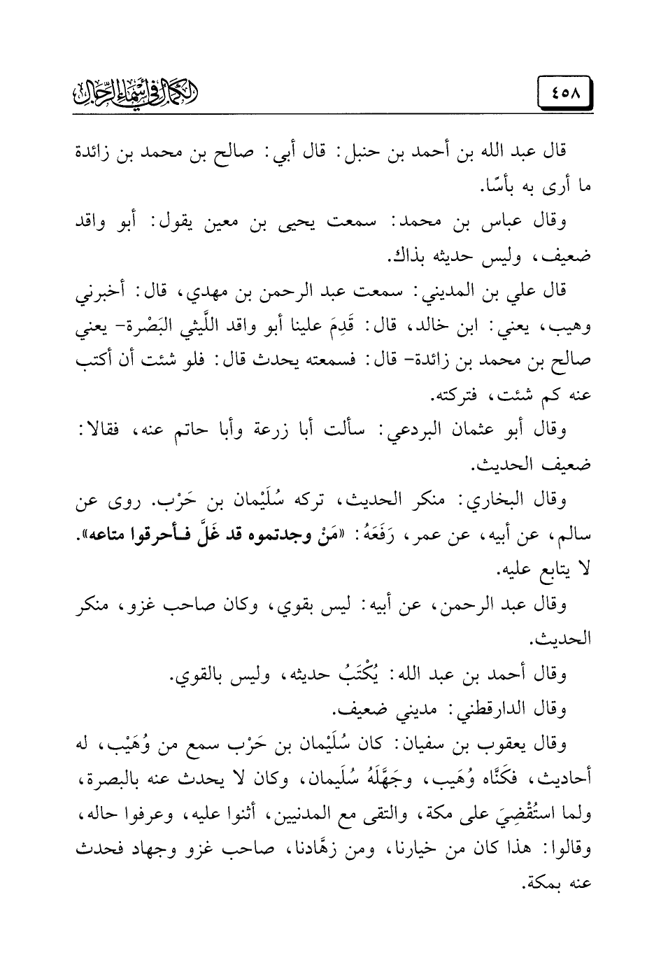 قال عبد الله بن أحمد بن حنبل: قال أبي: صالح بن محمد بن زائدة ما أري به بأسًا.