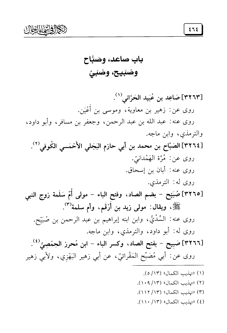 [٣٢٦٥] صُبَيْح -بضم الصاد، وفتح الباء- مولى أُمِّ سَلَمة زوج النبي -صَلَّى اللهُ عَلَيْهِ وَسَلَّمَ-، ويقال: مولي زيد بن أَرْقَم، وأم سلمة (¬٣).