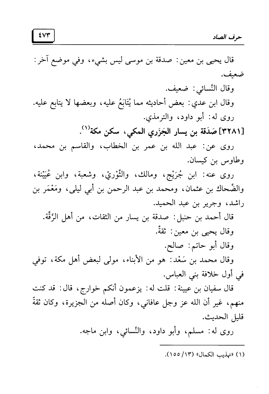 (¬١) "تهذيب الكمال" (١٣/ ١٥٥).