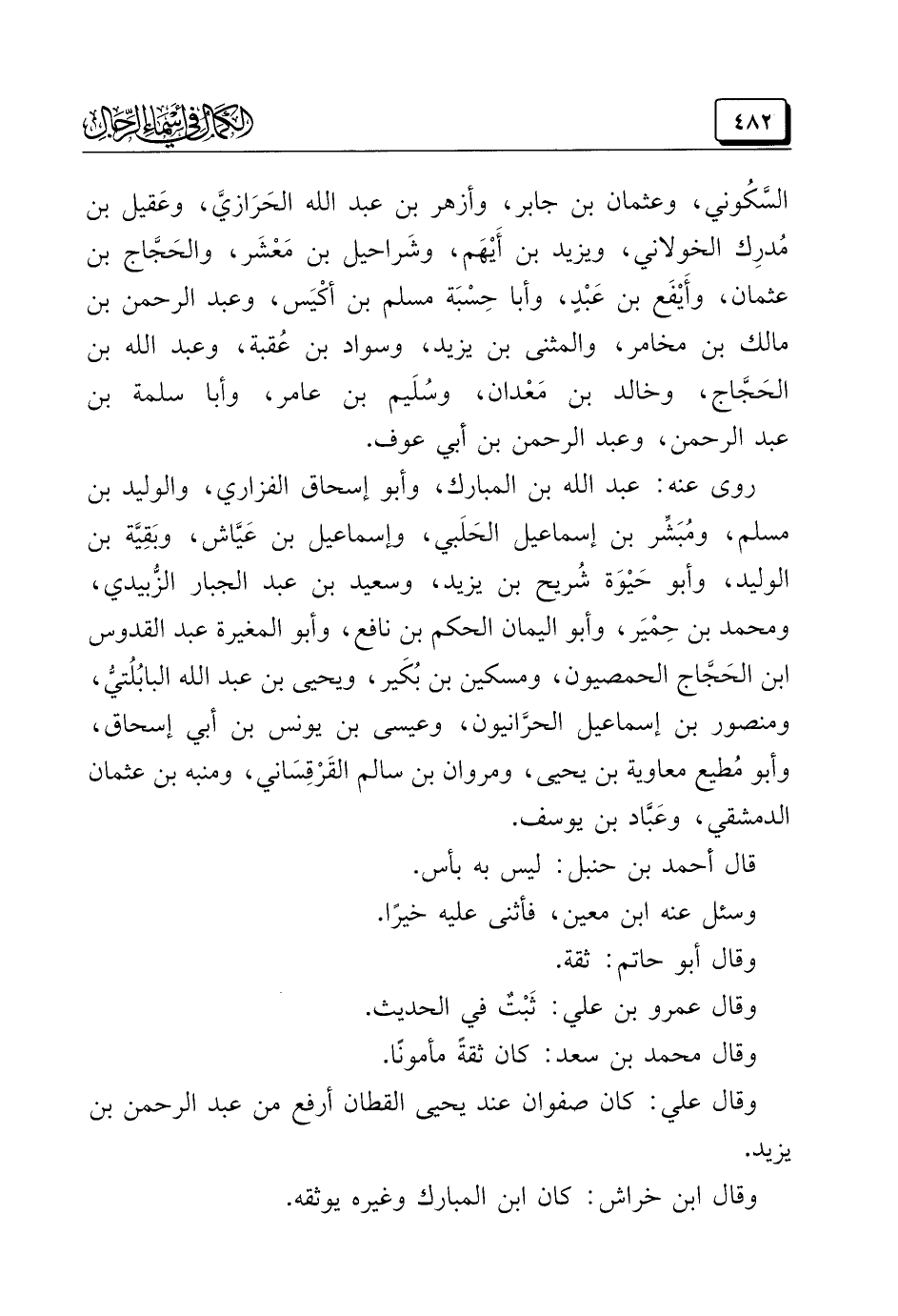 وقال علي: كان صفوان عند يحيى القطان أرفع من عبد الرحمن بن يزيد.