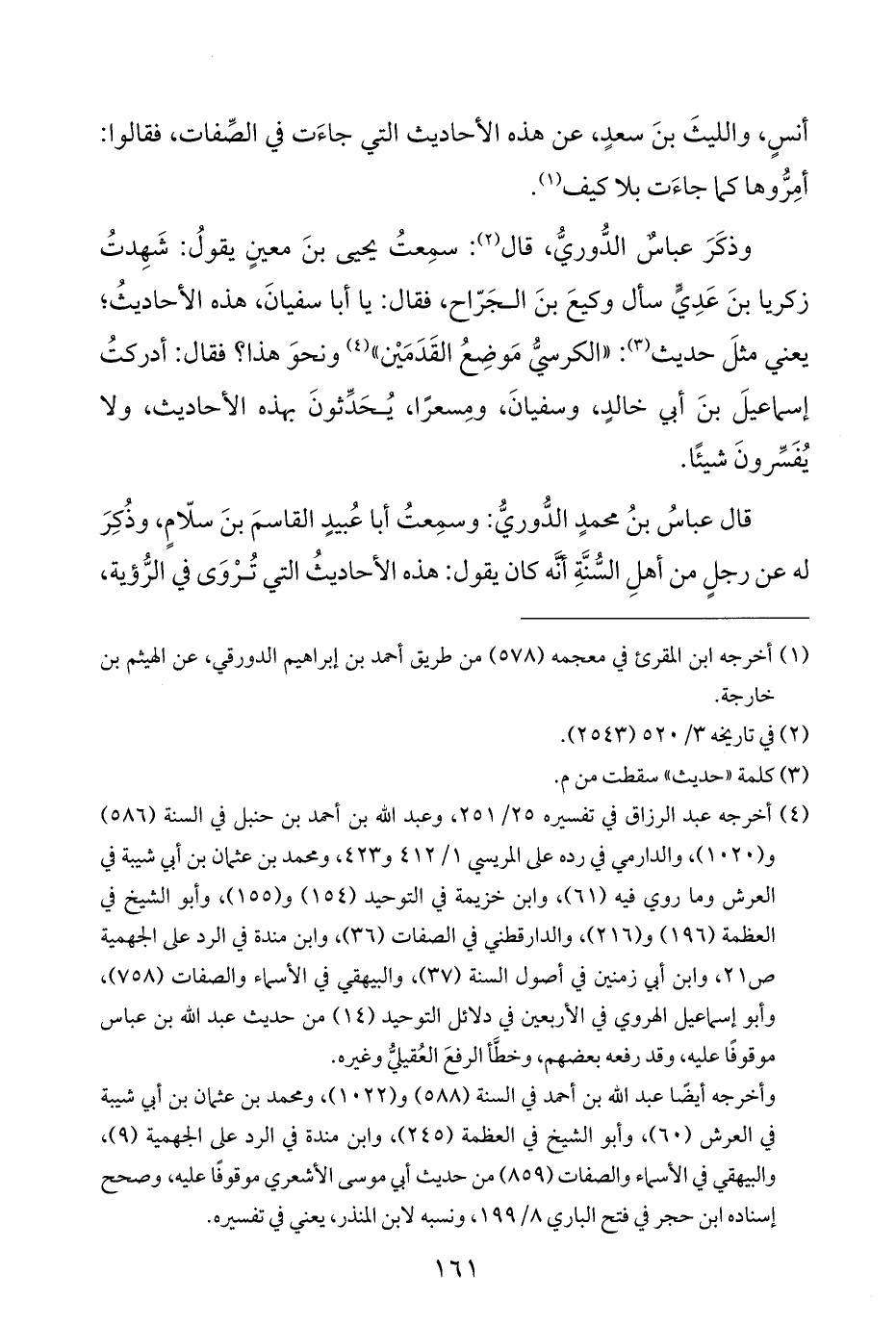 أنسٍ، والليثَ بنَ سعدٍ، عن هذه الأحاديث التي جاءَت في الصِّفات، فقالوا: أمِرُّوها كما جاءَت بلا كيف (¬١).