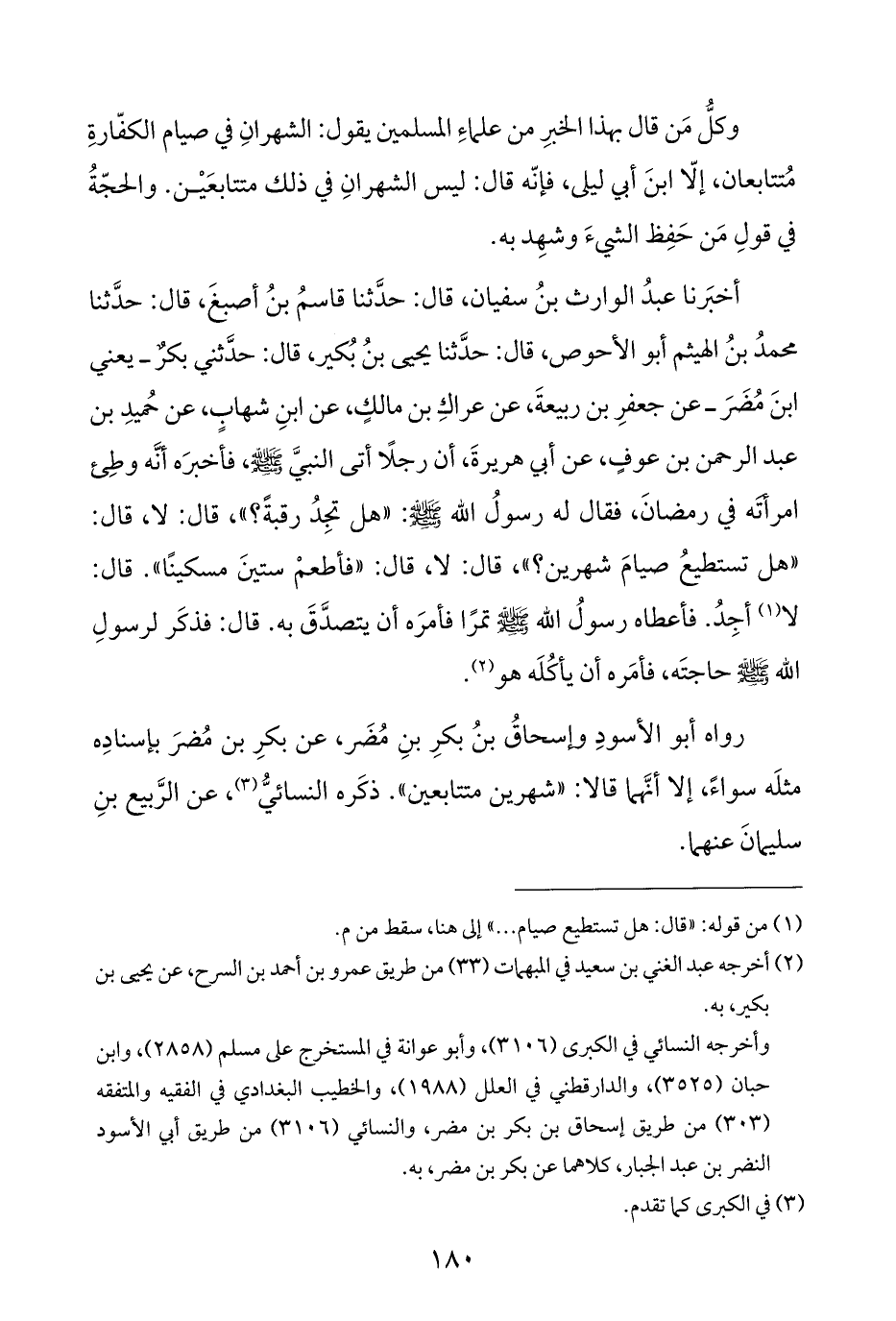 وكلُّ مَن قال بهذا الخبرِ من علماءِ المسلمين يقول: الشهرانِ في صيام الكفّارةِ مُتتابعان، إلّا ابنَ أبي ليلى، فإنّه قال: ليس الشهرانِ في ذلك متتابعَيْن. والحجّةُ في قولِ مَن حَفِظ الشيءَ وشهِد به.