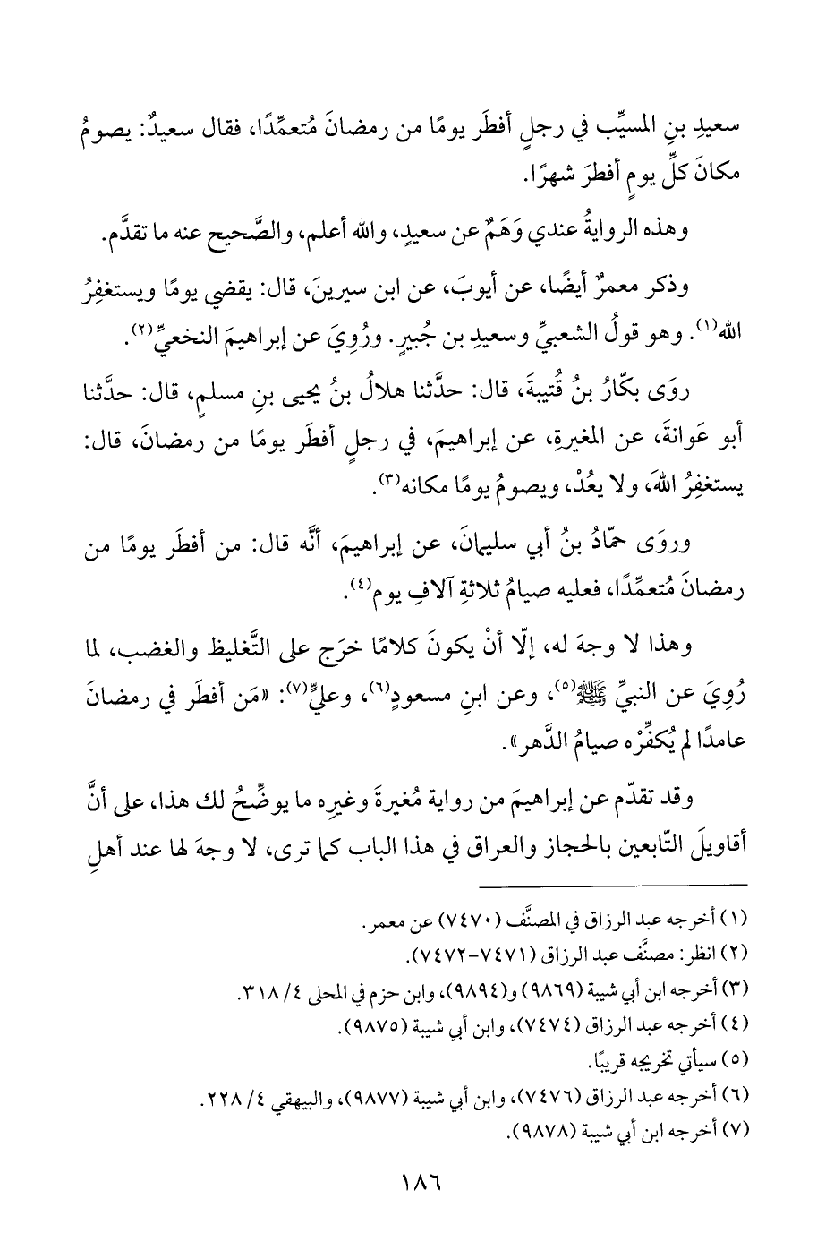 وقد تقدّم عن إبراهيمَ من رواية مُغيرةَ وغيرِه ما يوضِّحُ لك هذا، على أنَّ أقاويلَ التّابعين بالحجاز والعراق في هذا الباب كما تري، لا وجهَ لها عند أهلِ