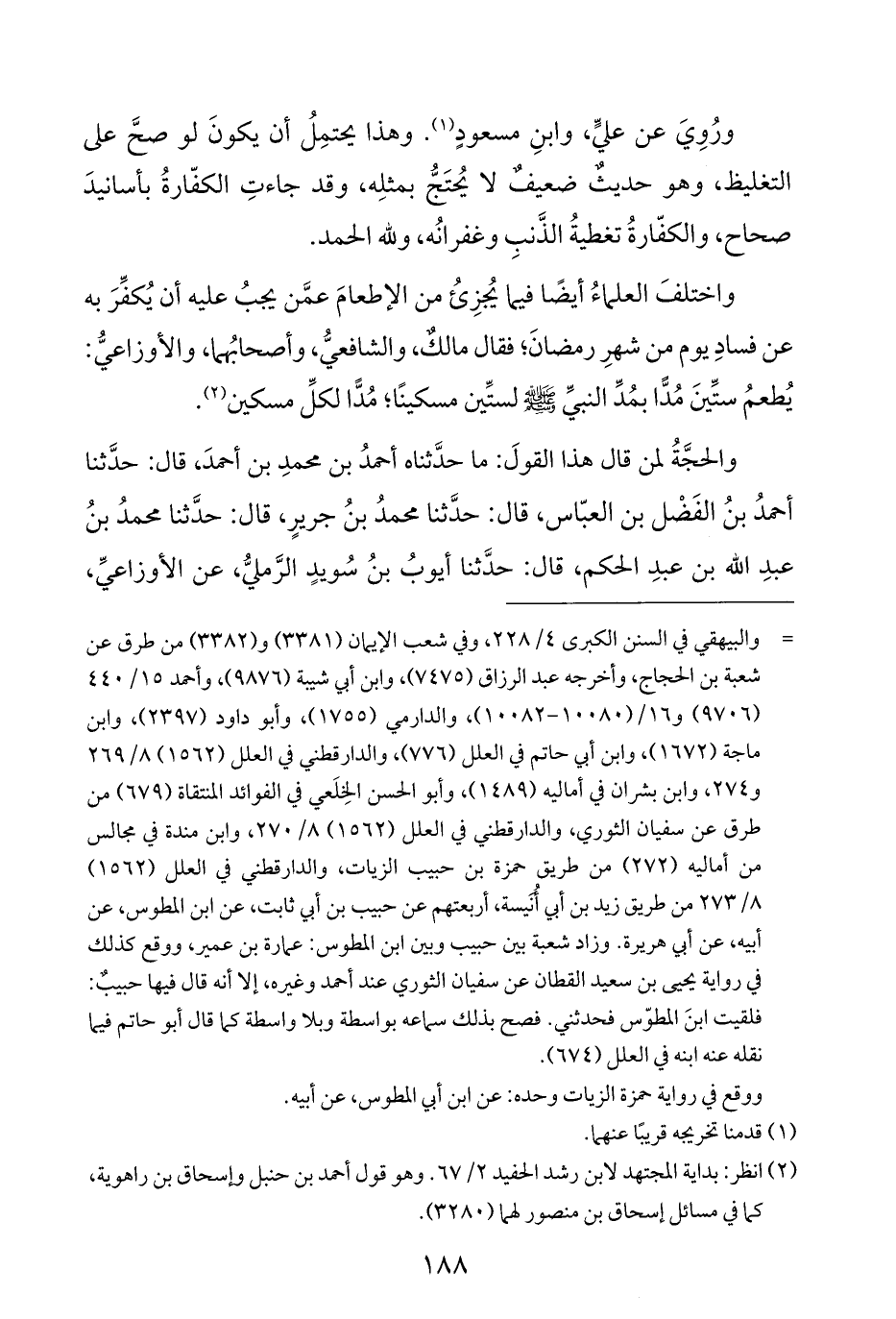 (¬٢) انظر: بداية المجتهد لابن رشد الحفيد ٢/ ٦٧. وهو قول أحمد بن حنبل وإسحاق بن راهوية، كما في مسائل إسحاق بن منصور لهما (٣٢٨٠).
