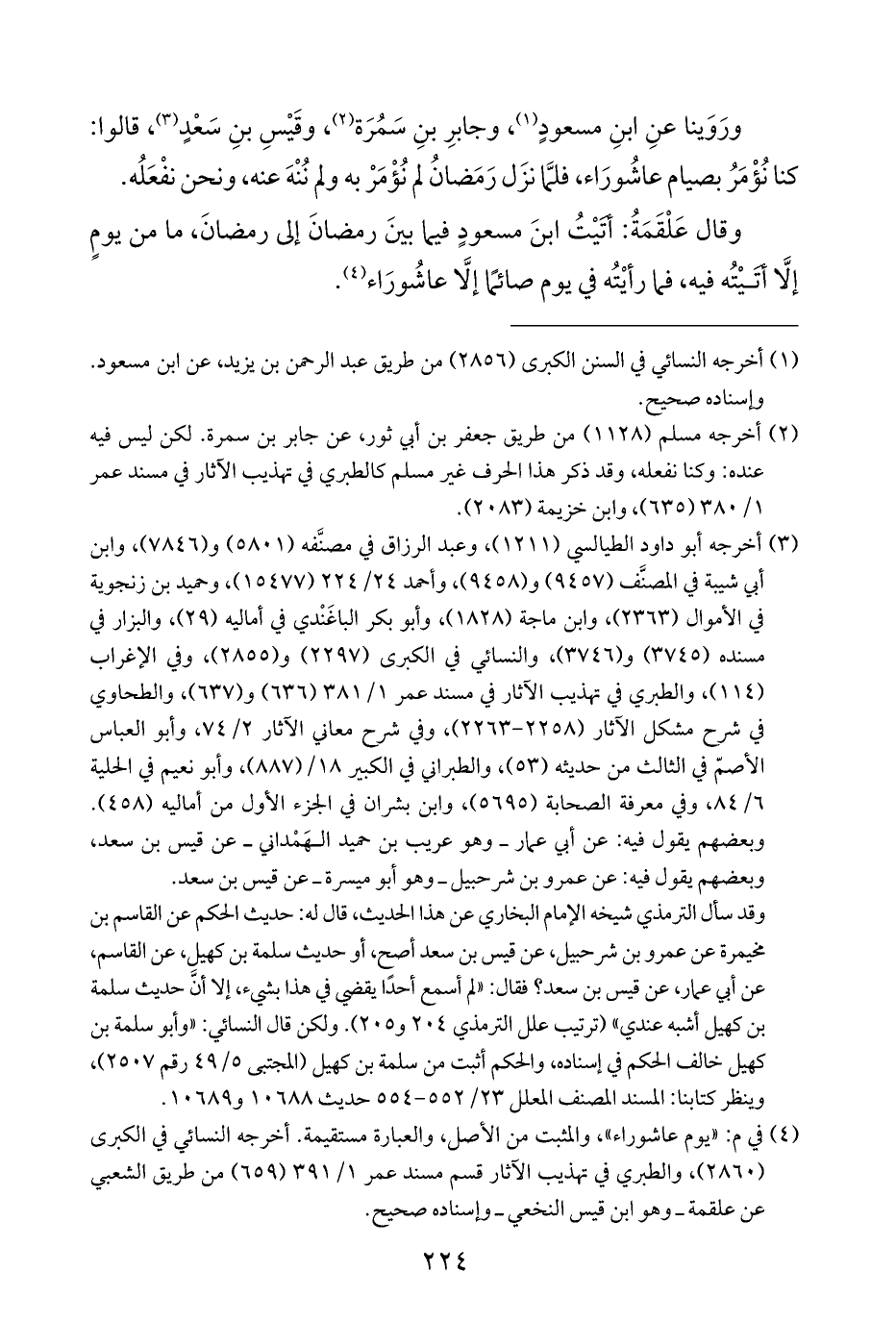 (¬٤) في م: "يوم عاشوراء"، والمثبت من الأصل، والعبارة مستقيمة. أخرجه النسائي في الكبرى (٢٨٦٠)، والطبري في تهذيب الآثار قسم مسند عمر ١/ ٣٩١ (٦٥٩) من طريق الشعبي عن علقمة - وهو ابن قيس النخعي - وإسناده صحيح.