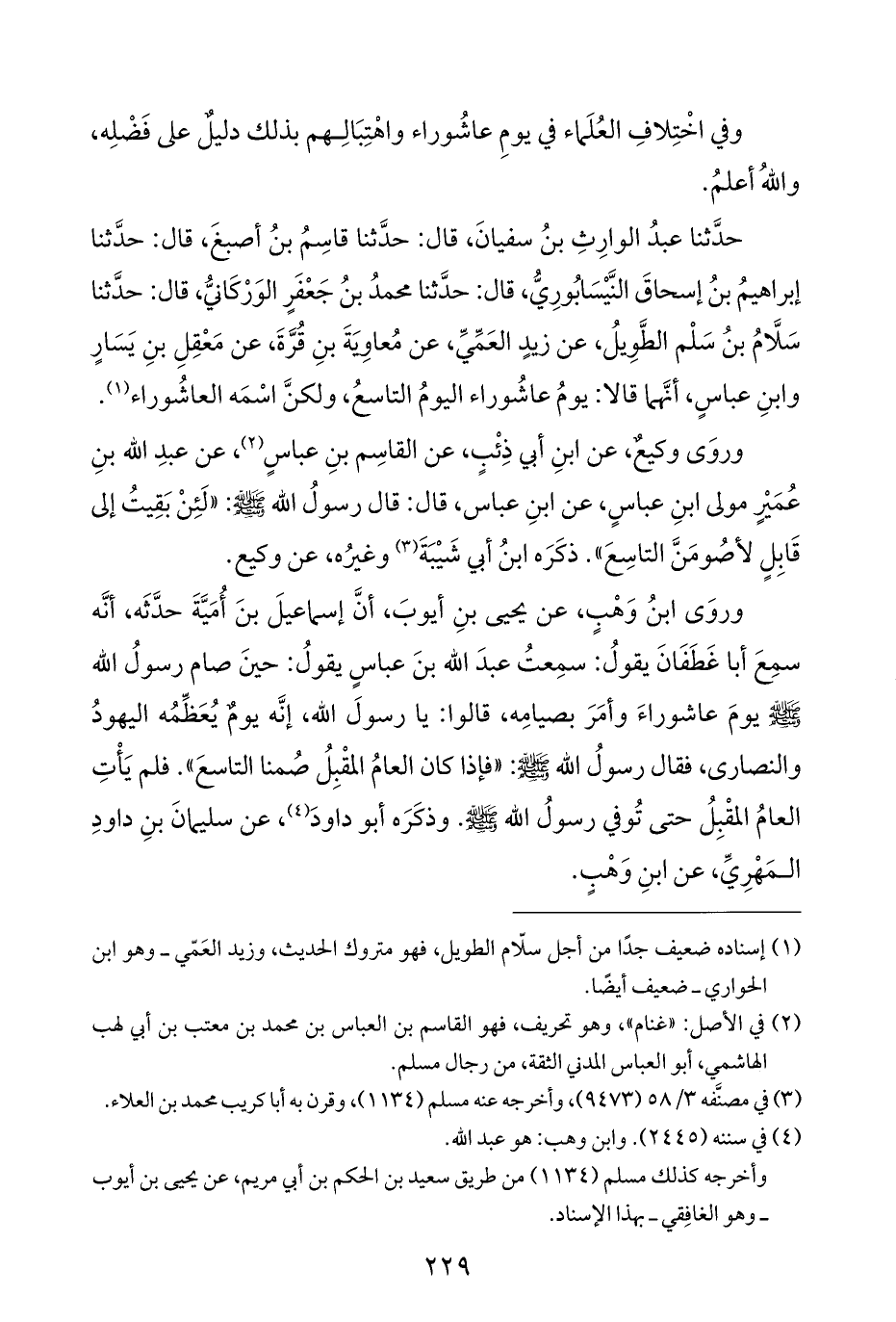 حَدَّثَنَا عبدُ الوارِثِ بنُ سفيانَ، قال: حَدَّثَنَا قاسِمُ بنُ أصبغَ، قال: حَدَّثَنَا إبراهيمُ بنُ إسحاقَ النَّيْسَابُورِيُّ، قال: حَدَّثَنَا محمدُ بنُ جَعْفَرٍ الوَرْكَانيُّ، قال: حَدَّثَنَا سَلَّامُ بنُ سَلْم الطَّوِيلُ، عن زيدٍ العَمِّيِّ، عن مُعاوِيةَ بنِ قُرَّةَ، عن مَعْقِلِ بنِ يَسَارٍ وابنِ عباسٍ، أنَّهما قالا: يومُ عاشُوراء اليومُ التاسعُ، ولكنَّ اسْمَه العاشُوراء (¬١).