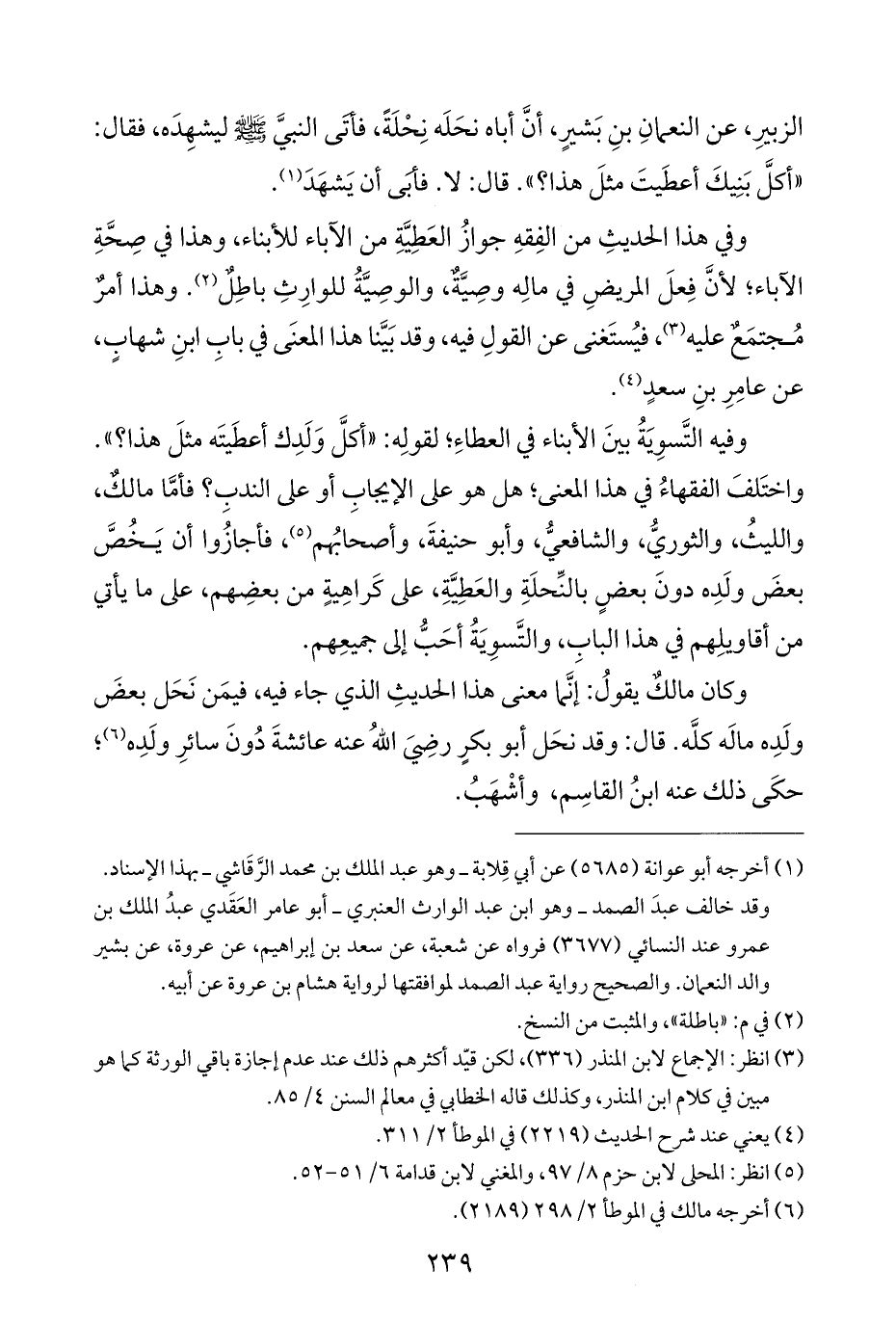 الزبيرِ، عن النعمانِ بنِ بَشيرٍ، أنَّ أباه نحَلَه نِحْلَةً، فأتى النبيَّ - صلى الله عليه وسلم - ليشهِدَه، فقال: "أكلَّ بَنِيكَ أعطَيتَ مثلَ هذا؟ ". قال: لا. فأبَى أن يَشهَدَ (¬١).