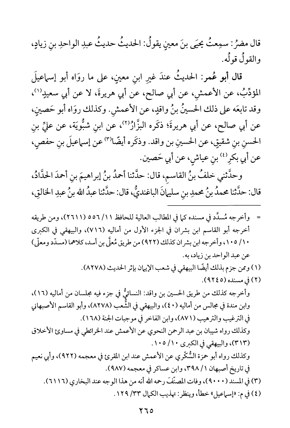 = وأخرجه مُسدَّد في مسنده كما في المطالب العالية للحافظ ١١/ ٥٥٦ (٢٦١١)، ومن طريقه أخرجه أبو القاسم بن بشران في الجزء الأول من أماليه (٧١٦)، والبيهقي في الكبرى ١٠/ ١٠٥، وأخرجه ابن بشران كذلك (٩٢٢) من طريق مُعلَّى بن أسد، كلاهما (مسدّد ومعلّى) عن عبد الواحد بن زياد، به.