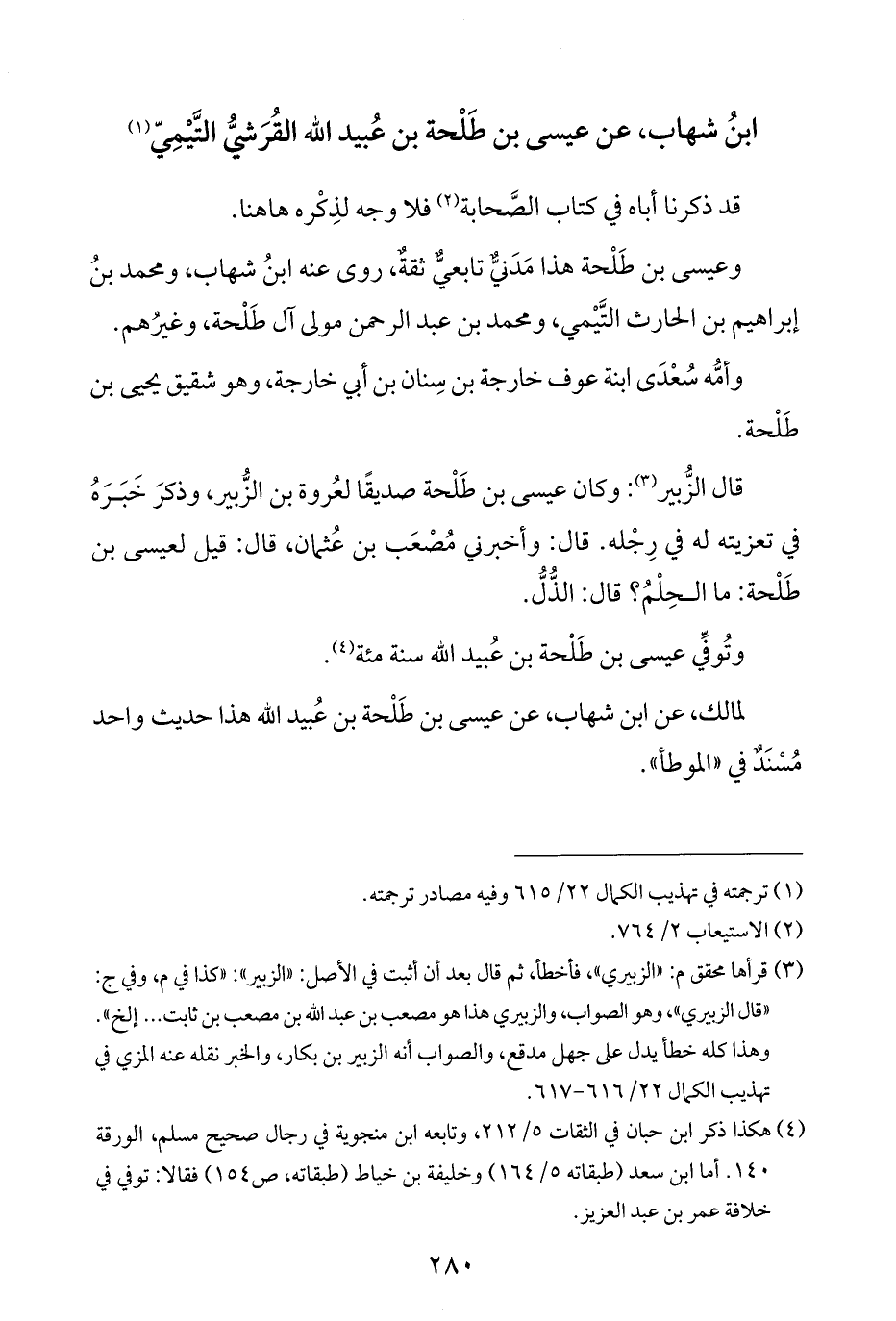 (¬٣) قرأها محقق م: "الزبيري"، فأخطأ، ثم قال بعد أن أثبت في الأصل: "الزبير": "كذا في م، وفي ج: "قال الزبيري"، وهو الصواب، والزبيري هذا هو مصعب بن عبد الله بن مصعب بن ثابت ... إلخ".