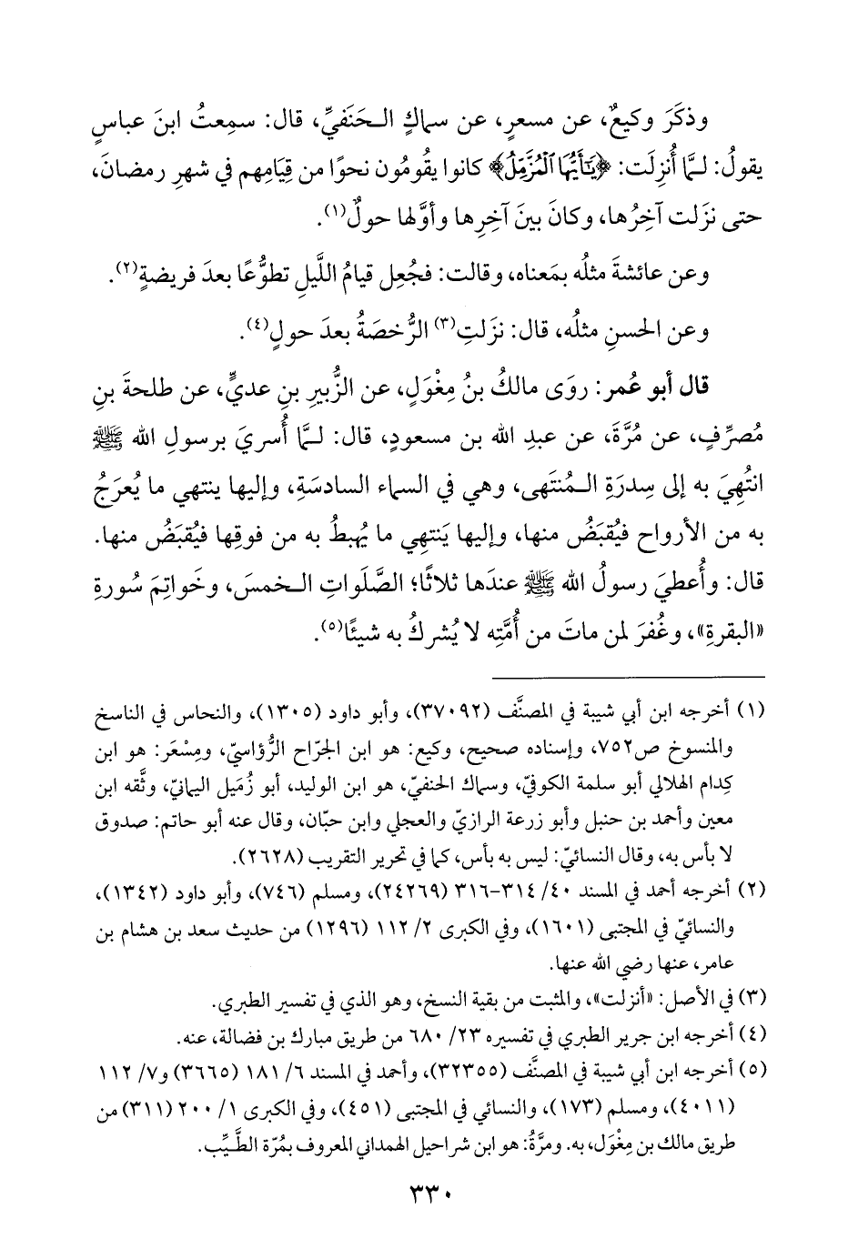 (¬٥) أخرجه ابن أبي شيبة في المصنَّف (٣٢٣٥٥)، وأحمد في المسند ٦/ ١٨١ (٣٦٦٥) و ٧/ ١١٢ (٤٠١١)، ومسلم (١٧٣)، والنسائي في المجتبى (٤٥١)، وفي الكبرى ١/ ٢٠٠ (٣١١) من طريق مالك بن مِغْوَل، به. ومرَّةُ: هو ابن شراحيل الهمداني المعروف بمُرّة الطَّيِّب.