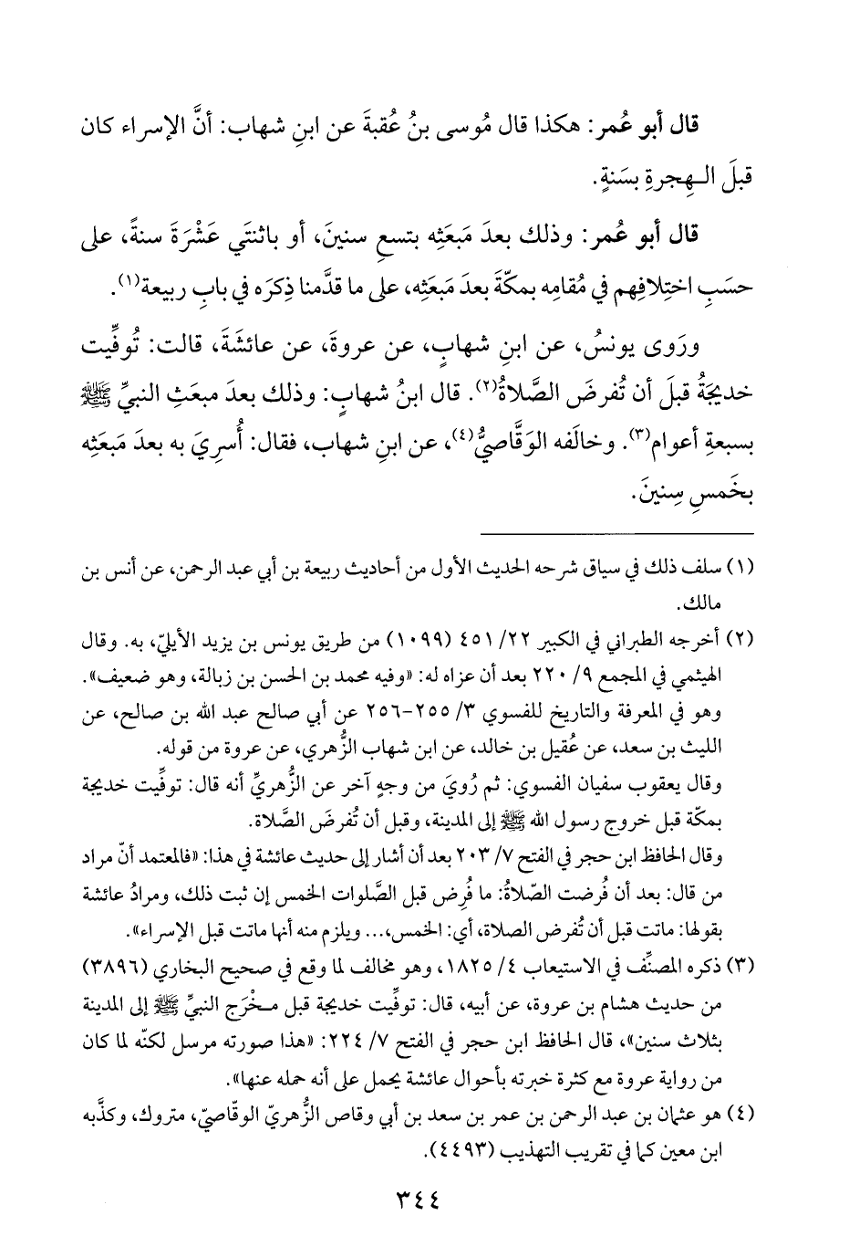قال أبو عُمر: هكذا قال مُوسى بنُ عُقبةَ عن ابنِ شهاب: أنَّ الإسراء كان قبلَ الهِجرةِ بسَنةٍ.
