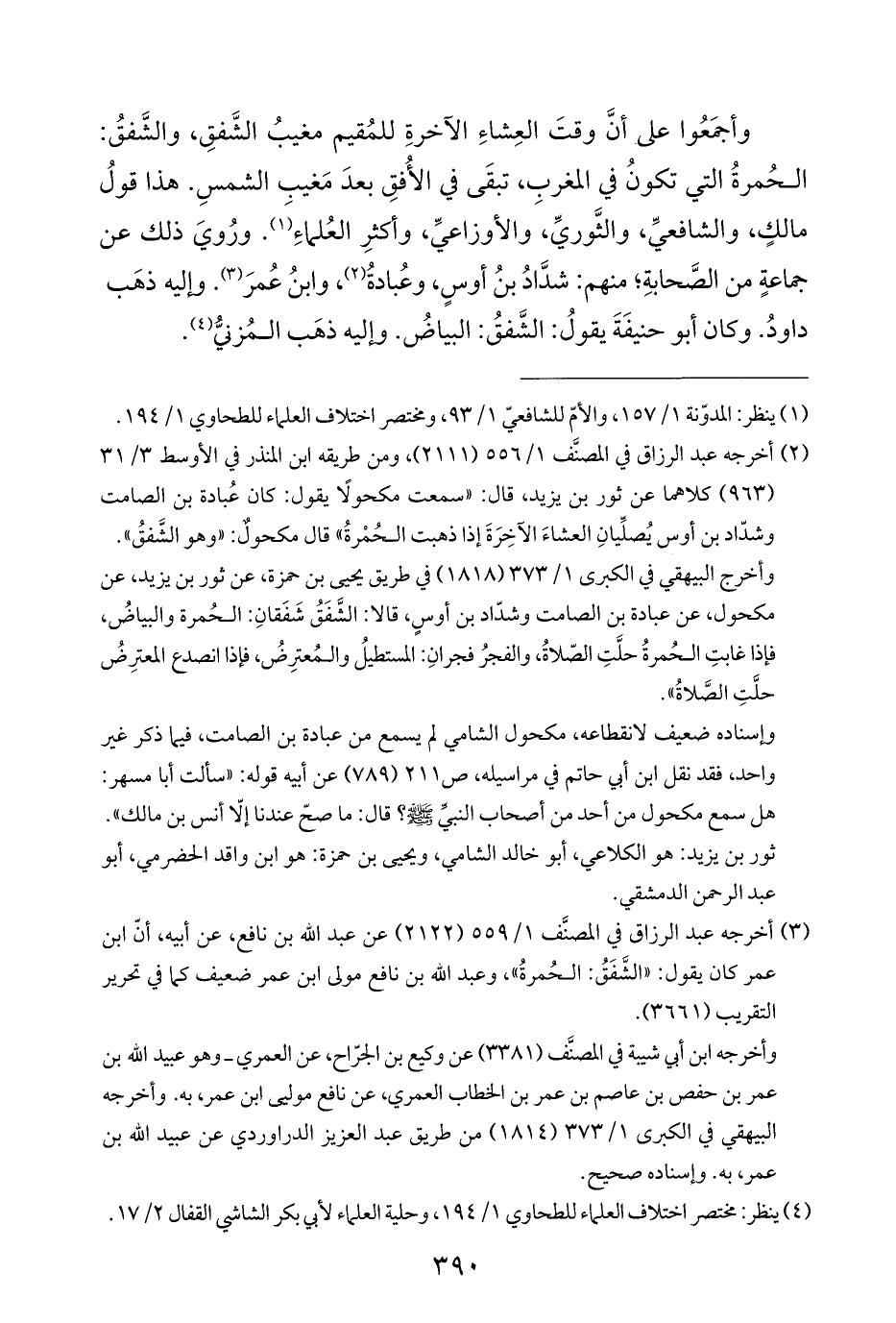 (¬٣) أخرجه عبد الرزاق في المصنَّف ١/ ٥٥٩ (٢١٢٢) عن عبد الله بن نافع، عن أبيه، أنّ ابن عمر كان يقول: "الشَّفَقُ: الحُمرةُ"، وعبد الله بن نافع مولى ابن عمر ضعيف كما في تحرير التقريب (٣٦٦١).