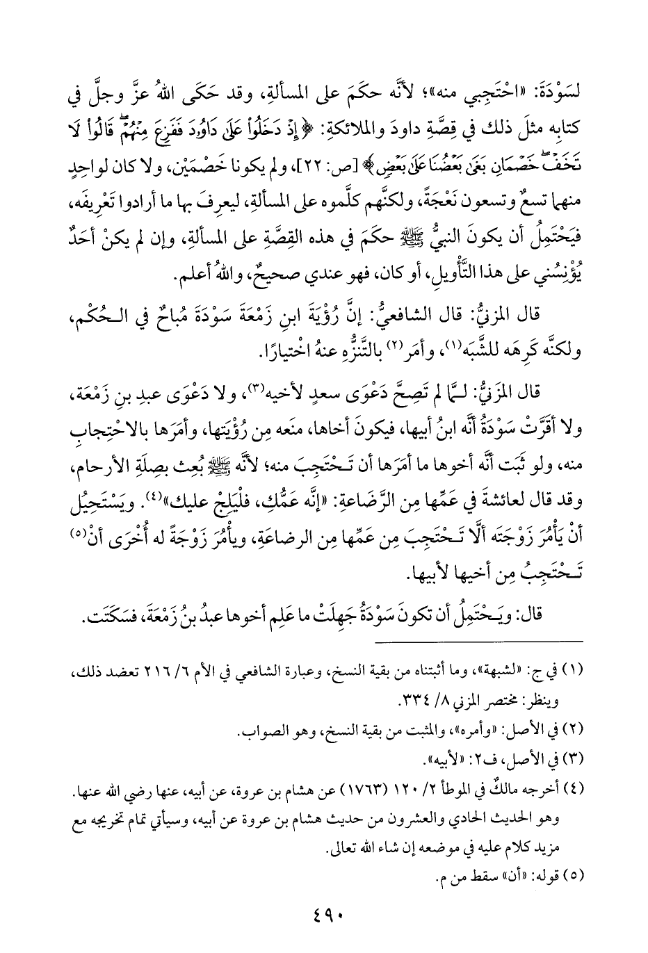 قال المزنيُّ: قال الشافعيُّ: إنَّ رُؤْيَةَ ابنِ زَمْعَةَ سَوْدَةَ مُباحٌ في الحُكْم، ولكنَّه كَرِهَه للشَّبَه (¬١)، وأمَر (¬٢) بالتَّنزُّهِ عنهُ اخْتيارًا.