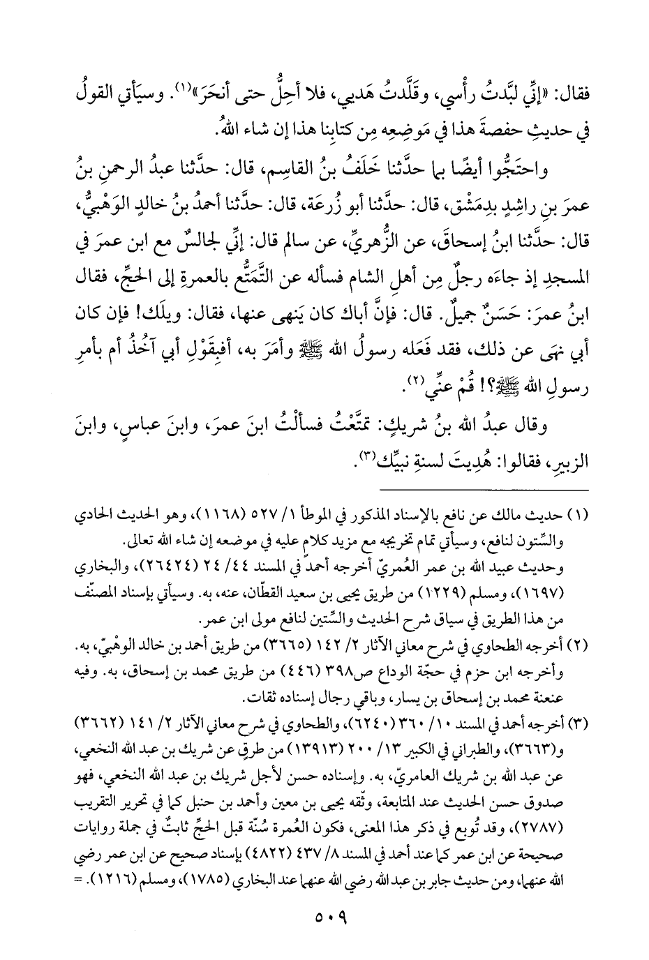 وقال عبدُ الله بنُ شريكٍ: تمتَّعْتُ فسألْتُ ابنَ عمرَ، وابنَ عباسٍ، وابنَ الزبيرِ، فقالوا: هُدِيتَ لسنةِ نبيِّك (¬٣).