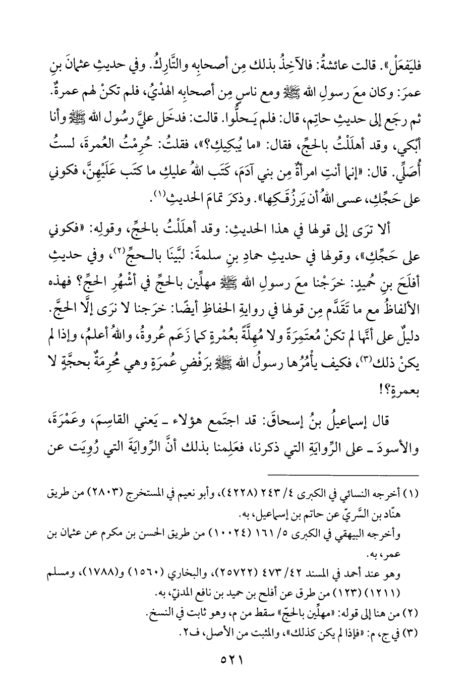 قال إسماعيلُ بنُ إسحاقَ: قد اجتَمع هؤلاء - يَعني القاسِمَ، وعَمْرَةَ، والأسودَ - على الرِّوايَةِ التي ذكرنا، فعَلِمنا بذلك أنَّ الرِّوايَةَ التي رُوِيَت عن