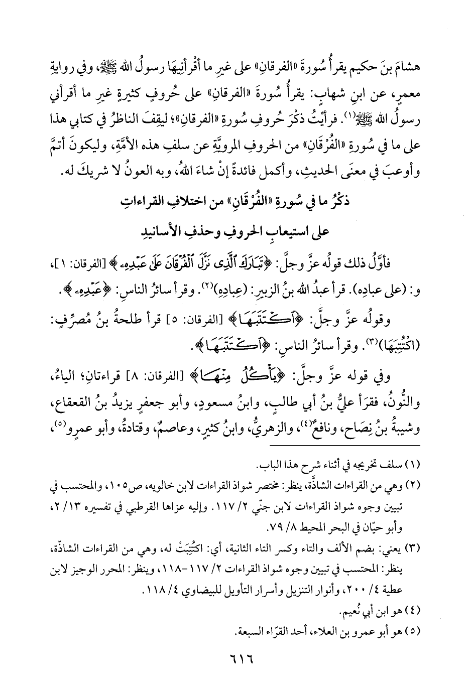 ذكْرُ ما في سُورةِ "الفُرْقَانِ" من اختلافِ القراءاتِ على استيعابِ الحروفِ وحذفِ الأسانيدِ