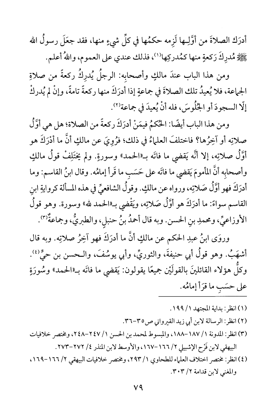 (¬٢) انظر: الرسالة لابن أبي زيد القيرواني ص ٣٥ - ٣٦.