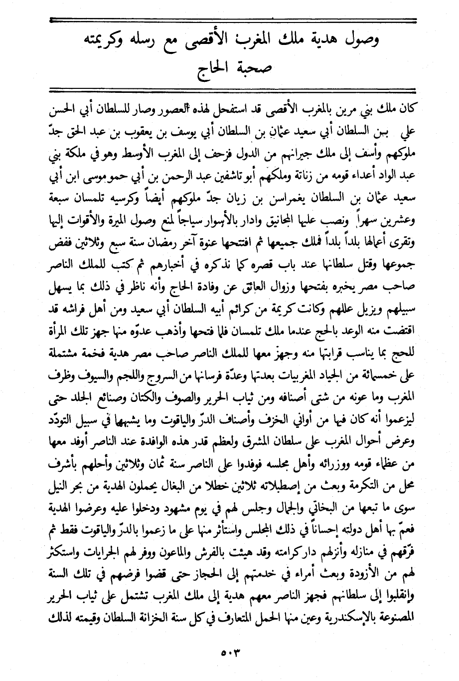 وصول هدية ملك المغرب الأقصى مع رسله وكريمته صحبة الحاج