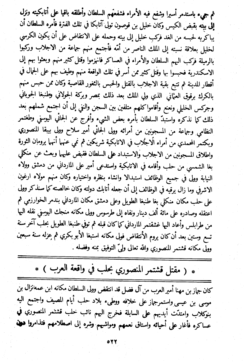مقتل قشتمر المنصوري بحلب في واقعة العرب